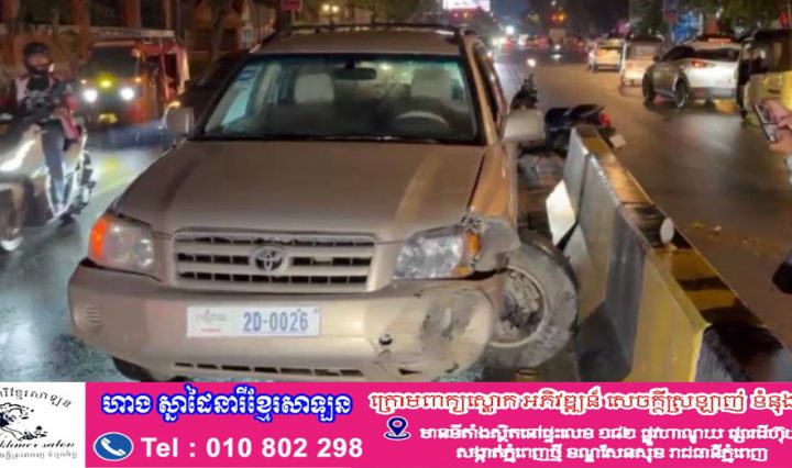 បុរសម្នាក់បេីករថយន្តហាយឡែនឌ័របុកក្បាលនាគពុះចែកទ្រូងផ្លូវបណ្ដាលឲ្យរងការខូចខាត