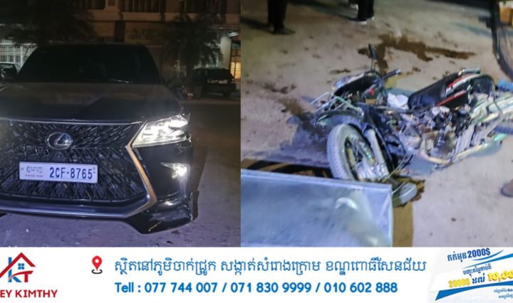 ករណីគ្រោះថ្នាក់ចរាចរណ៍រវាងរថយន្តឡិចសុីស 570 និងម៉ូតូហុងដាឌ្រីមសេ១២៥បណ្ដាលឲ្យម្ចាស់ម៉ូតូរងរបួសធ្ងន់