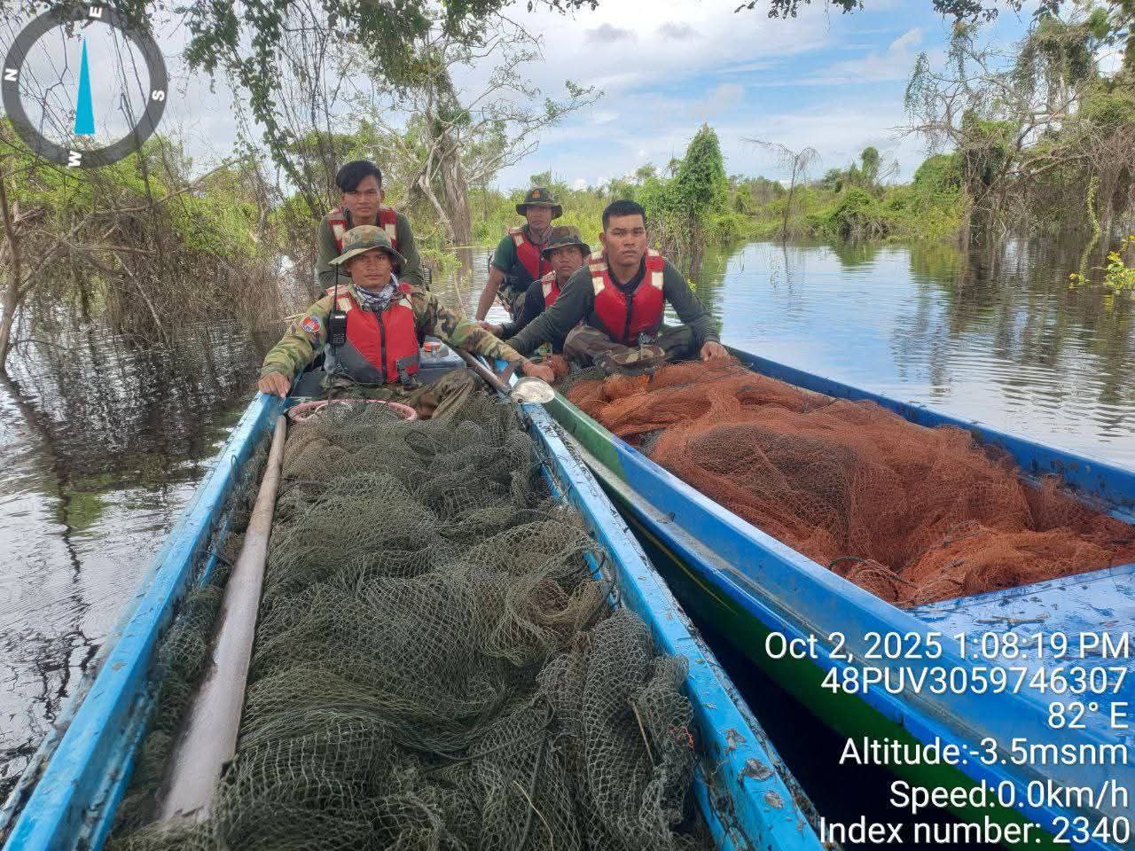 ខេត្តកំពង់ធំ : យប់ថ្ងៃទី៣ ខែតុលា ឆ្នាំ២០២៥ វេលាម៉ោង២ៈ៣០នាទីយប់ ឧត្តមសេនីយ៍ទោ សេង ធារិន ប្រធានគណៈបញ្ជាការដឹកនាំបង្រ្កាបបទលើ្មសនេសាទលើផ្ទៃបឹងទន្លេសាប បានចាត់តាំងកម្លាំងអង្គភាព ចំណុះយោធភូមិភាគទី៥ ដឹកនាំដោយវរសេនីយ៍ទោ ស វិបុល សហការជាមួយកម្លាំងតំបន់ប្រតិបត្តិការសឹករងកំពង់ឆ្នាំង និងកម្លាំងការិយាល័យទី២ កងទ័ពជើងគោក ចុះប្រតិបត្តិការបង្រ្កាបការជួយដូរ និងដឹកលៀសដោយខុសច្បាប់ ចំនួន ៣០តោន ស្ថិតនៅក្នុងភូមិសាស្រ្តស្រុកស្ទោង ខេត្តកំពង់ធំ។