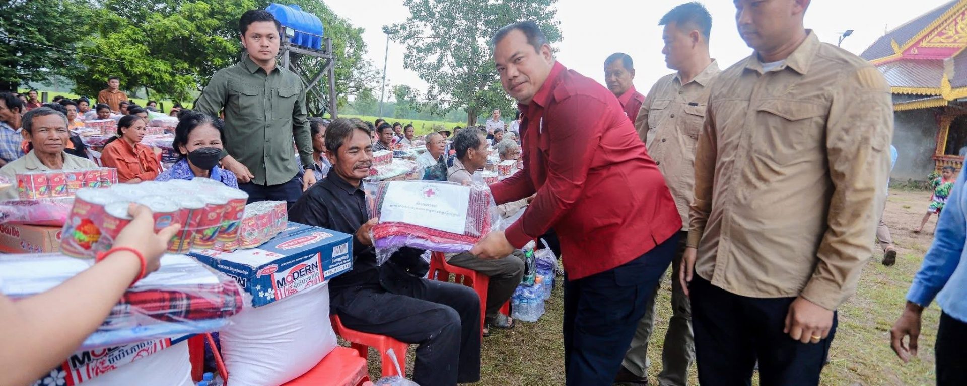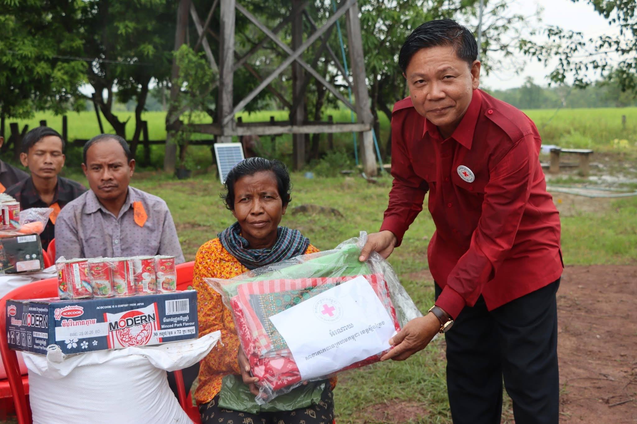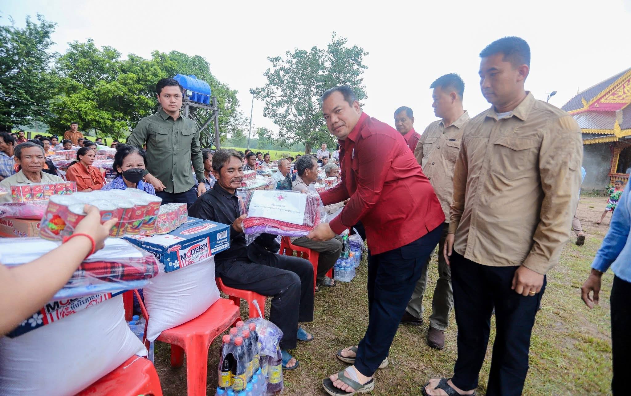 ខេត្តស្ទឹងត្រែង៖ លោក ផៃ ប៊ុនឈឿន រដ្ឋមន្ត្រីប្រតិភូអមនាយករដ្ឋមន្ត្រី និងជាប្រធានក្រុមការងាររាជរដ្ឋាភិបាលចុះមូលដ្ឋានខេត្តស្ទឹងត្រែង និងលោក សរ សុពុត្រា អភិបាល នៃគណៈអភិបាលខេត្ត និងជាប្រធានគណៈកម្មាធិការសាខាកាកបាទក្រហមកម្ពុជា ខេត្តស្ទឹងត្រែង រួមនិងមន្រ្តីរាជការអង្គភាពជុំវិញខេត្ត បានអញ្ជើញក្នុងពិធីចែកស្បៀងសង្រ្គោះបឋម ជូនប្រជាពលរដ្ឋងាយរងគ្រោះដែលជួបប្រទះគ្រោះទឹកជំនន់ ២៤១គ្រួសារមកពីឃុំព្រែកមាស និងឃុំស្រែសំបូរ នៅក្នុងបរិវេណវត្តកញ្ចាញគោក ស្រុកសៀមប៉ាង ខេត្តស្ទឹងត្រែងនាព្រឹកថ្ងៃទី៤ ខែតុលា ឆ្នាំ២០២៥ ។