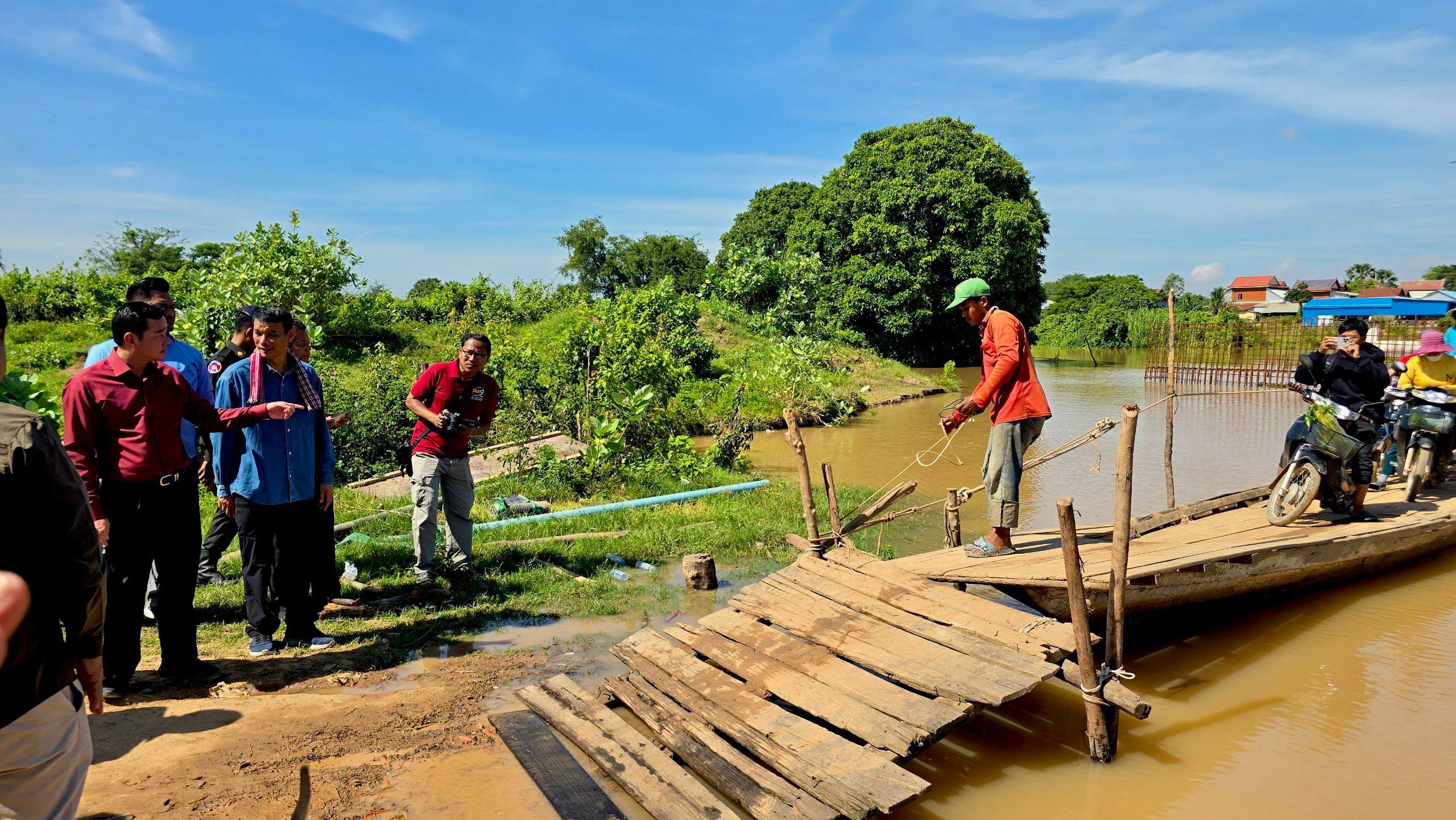 ខេត្តកំពង់ចាម៖ អភិបាលនៃគណៈអភិបាលខេត្តកំពង់ចាម លោក អ៊ុន ចាន់ដា នាព្រឹកថ្ងៃទី៤ ខែតុលា ឆ្នាំ២០២៥នេះ បានអញ្ជើញចុះការដ្ឋានស្ថាបនាស្ពានបេតុង “ស្ទឹងឆ្វេង” ស្ថិតនៅចំណុចព្រំប្រទល់ភូមិស្ទឹងឆ្វេង ឃុំច្បារអំពៅ ស្រុកបាធាយ និងភូមិអូរស្វាយលិច ឃុំព្រែកកុយ ស្រុកកងមាស ខេត្តកំពង់ចាម ខណៈការងារសាងសង់ត្រូវបានផ្អាកជាបណ្តោះអាសន្នក្នុងរដូវទឹកឡើងខ្លាំង។