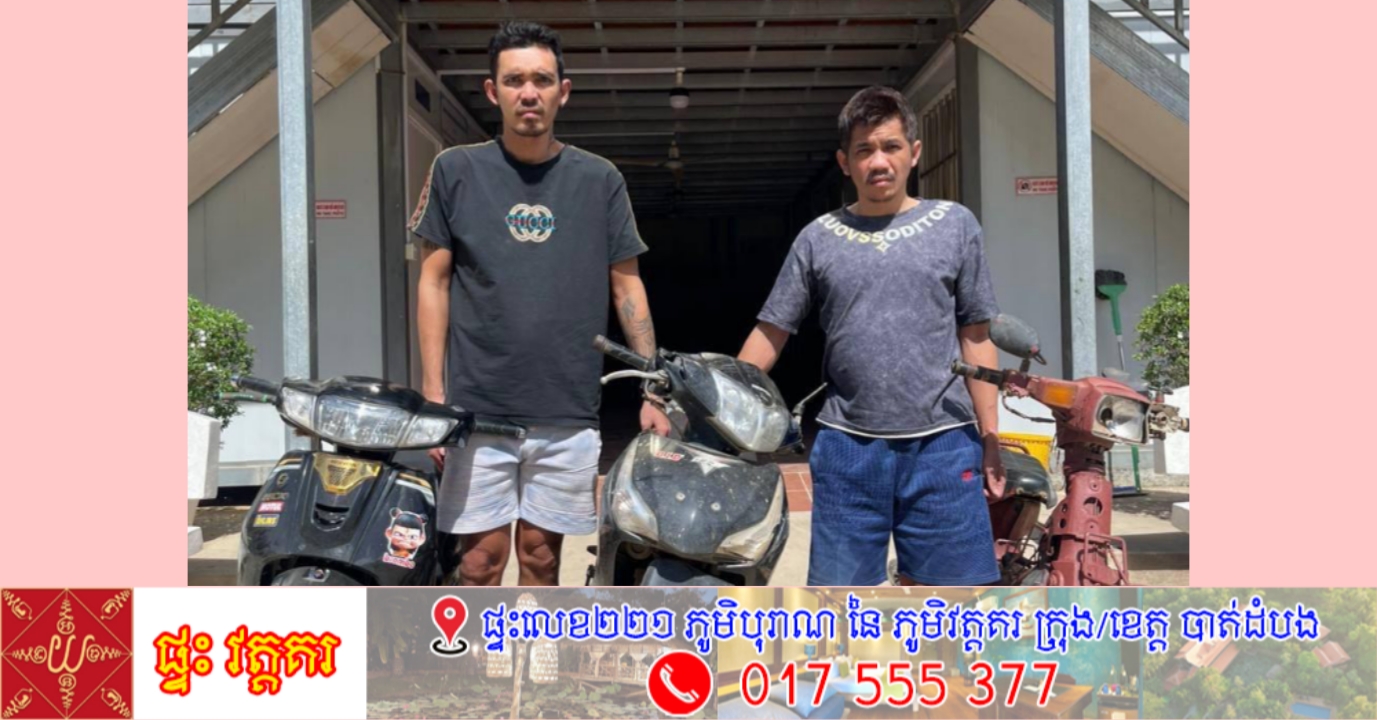 ជនជាតិថៃ២នាក់ធ្វើសកម្មភាពប្លន់យកម៉ូតូពីបុរស២នាក់ត្រូវបាននគរបាលក្រុងសំពៅពូនឃាត់ខ្លួន