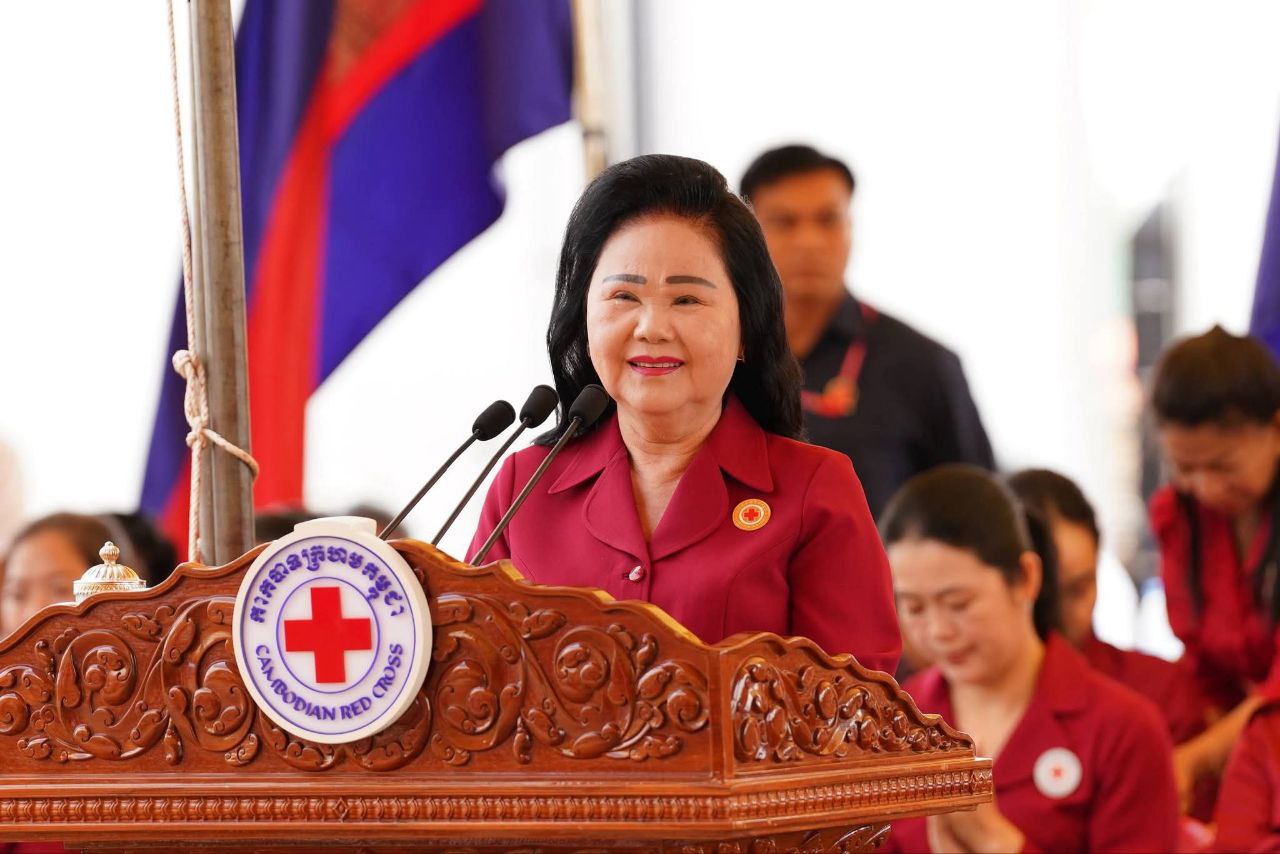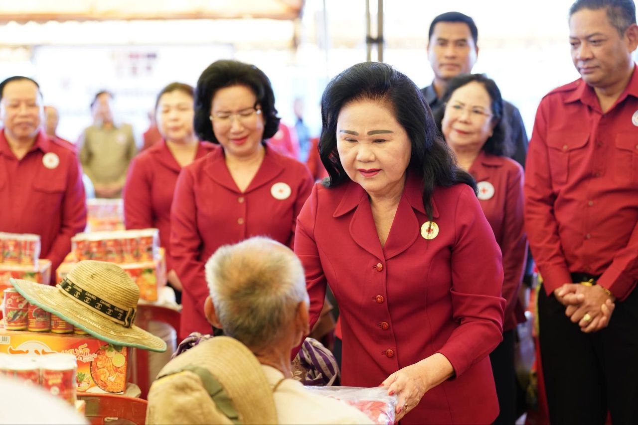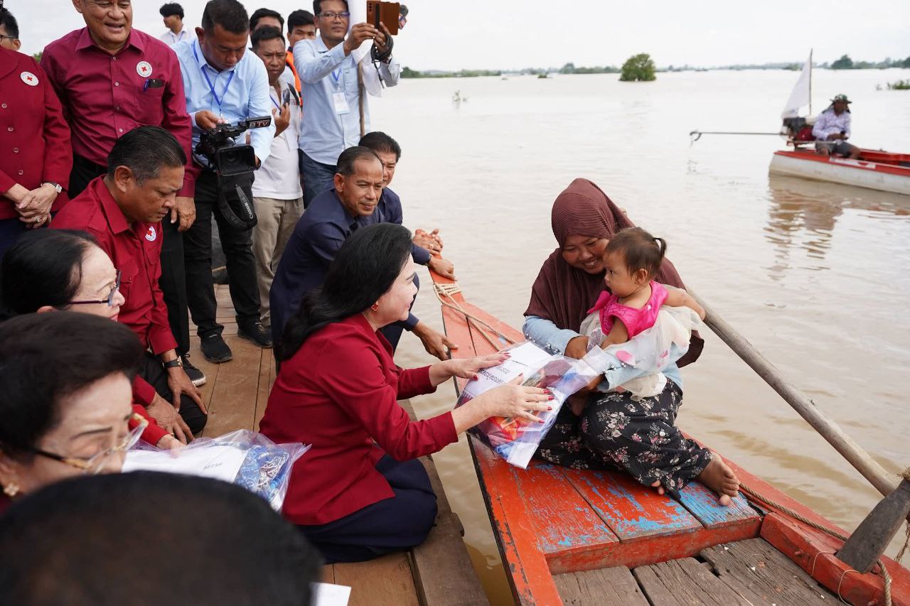 ក្នុងឱកាសនោះ សម្តេចកិត្តិព្រឹទ្ធបណ្ឌិត បាននាំនូវព្រះ រាជបន្ទូលនិងព្រះសវណីយ៍ផ្តាំផ្ញើសួរសុខទុក្ខ ប្រកប ដោយព្រះរាជហឫទ័យក្តីនឹករលឹក និងសេចក្តីស្រឡាញ់ដ៏ជ្រាលជ្រៅ ពីព្រះករុណា ព្រះមហាក្សត្រ ជាអម្ចាស់ជីវិតលើត្បូង និងសម្តេចព្រះមហាក្សត្រី ព្រះវររាជមាតាជាតិខ្មែរ ព្រះប្រធានកិត្តិយសកាកបាទក្រហមកម្ពុជា ជាទីគោរពសក្ការៈដ៏ខ្ពង់ខ្ពស់បំផុត ដែលជានិច្ចកាល ព្រះអង្គទាំងទ្វេតែងតែគិតគូរពីសុខទុក្ខប្រជានុរាស្ត្ររបស់ព្រះអង្គគ្រប់ពេលវេលា និងនៅគ្រប់ទីកន្លែង។ ជាក់ស្ដែង កាលពីថ្ងៃទី៣ ខែតុលា ឆ្នាំ២០២៥កន្លងទៅនេះ សម្តេចព្រះវររាជមាតាជាតិខ្មែរ បានសព្វព្រះរាជហឫទ័យ ប្រោសព្រះរាជទាននូវព្រះរាជទ្រព្យចំនួន ២ម៉ឺនដុល្លារអាម៉េរិក សម្រាប់យកមកចែកជូនប្រជាពលរដ្ឋ ដែលរងផលប៉ះពាល់ដោយទឹកជំនន់នៅក្នុងស្រុកត្បូងឃ្មុំ ខេត្តត្បូងឃ្មុំរបស់យើងនេះ។