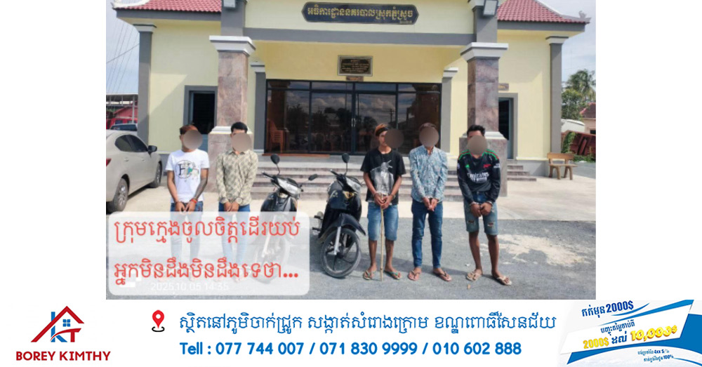 ខេត្តកំពង់ស្ពឺ៖ ដោយអនុវត្ដតាមបញ្ជាដឹកនាំរបស់លោកឧត្ដមសេនីយ៍ទោ ឃឹម សុកខៃ ស្នងការនគរបាលខេត្ដកំពង់ស្ពឺ និងបានការចង្អុលណែនាំពីជំនាញព្រហ្មទណ្ឌខេត្ដ កម្លាំងអធិការដ្ឋាននគរបាលស្រុកភ្នំស្រួច លោកវរសេនីយ៍ទោ ជុន ចន្ទដេត អធិការនគរបាលស្រុកភ្នំស្រួចបានបញ្ជាឱ្យផ្នែកព្រហ្មទណ្ឌស្រុកសហការ ស្រាវជ្រាវតាមច្បាមមុខសញ្ញាក្មេងទំនេីងពាក់ព័ន្ធករណីហិង្សាដោយចេតនាស្ទាក់វាយប្លន់យកម៉ូតូជនរងគ្រោះនៅថ្ងៃទី៤ ខែតុលា ឆ្នាំ២០២៥ ។