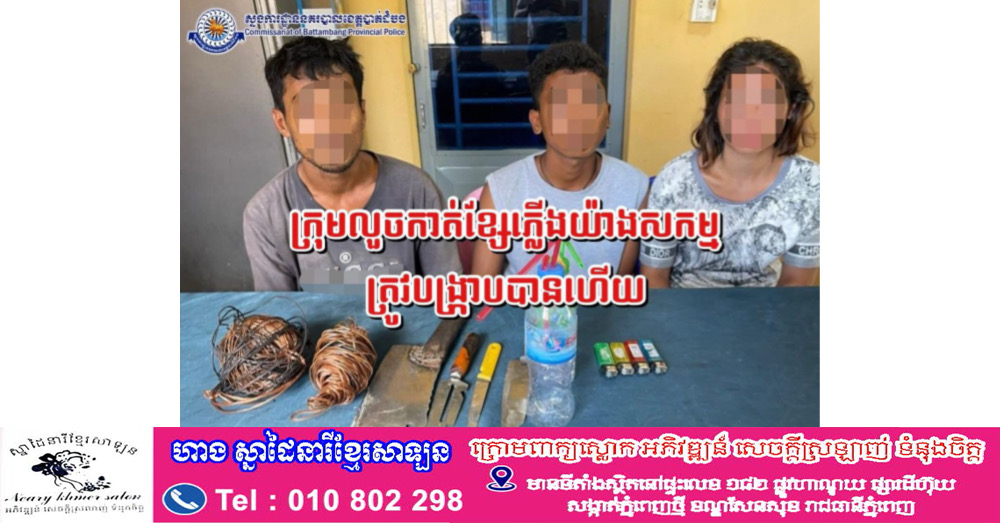 ខេត្តបាត់ដំបង÷ក្រុមការងារព័ត៌មាននិងប្រតិកម្មរហ័សនៃស្នងការដ្ឋាននគរបាលខេត្តបាត់ដំបង មានកិត្តិយសសូមជម្រាបជូនសាធារណជនបានជ្រាបថា នៅថ្ងៃទី០៥ ខែតុលាឆ្នាំ២០២៥ នេះសមត្ថកិច្ចនគរបាលខេត្តបាត់ដំបងបានស្វែងរកនិងបំផ្លាញសំបុកក្រុមលួចកាត់ខ្សែភ្លេីងដែលត្រូវបានផ្សព្វផ្សាយជាចំហក្នុងបណ្តាញសង្គមនាប៉ុន្មានថ្ងៃកន្លងមកនេះ។