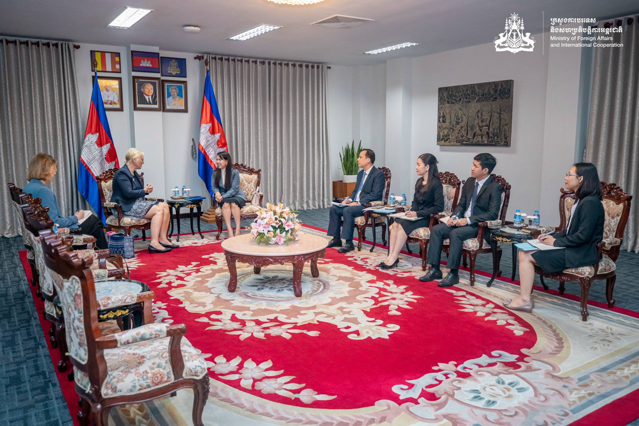 ភ្នំពេញ៖ លោកស្រី ជ្រឹង បុទុមរង្សី រដ្ឋលេខាធិការ បានជួបពិភាក្សាទ្វេភាគីជាមួយ លោកស្រី Astrid Emilie Helle ឯកអគ្គរាជទូតន័រវែសប្រចាំកម្ពុជា ដែលមាននិវេសនដ្ឋាននៅទីក្រុងបាងកក កាលពីថ្ងៃទី០៧ ខែតុលា ឆ្នាំ២០២៥ម្សិលមិញនេះ នៅទីស្តីការក្រសួងការបរទេស និងសហប្រតិបត្តិការអន្តរជាតិ។