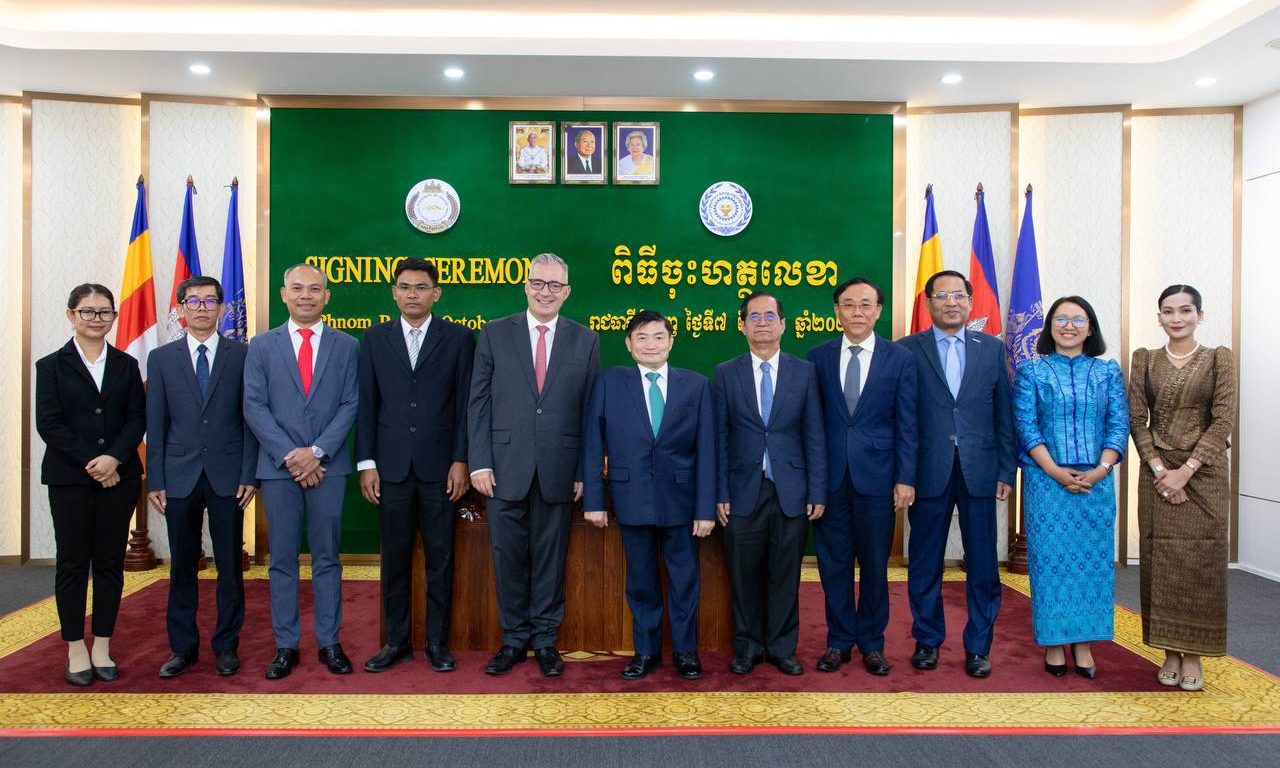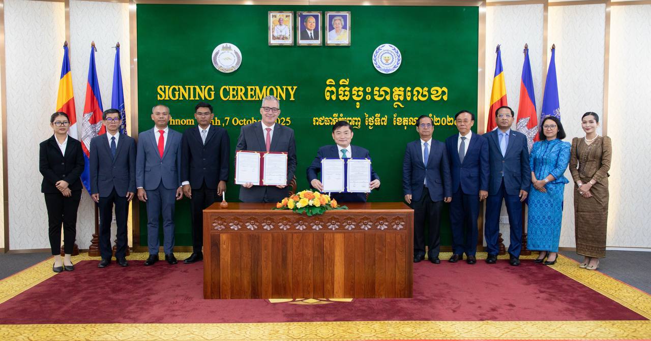 ភ្នំពេញ៖ លោក ហេង សួរ រដ្ឋមន្រ្តីក្រសួងការងារ និងបណ្តុះបណ្តាលវិជ្ជាជីវៈ និងលោក ហ្វ្រាង់ស្វ័រ ស្លូបេលែន នាយកសាលាសណ្ឋាគារ និងទេសចរណ៍ ប៉ូល ឌុយប្រ៊ូល តំណាងអង្គការបណ្តុះបណ្តាល និងវឌ្ឍនភាពកម្ពុជា (ONG Formation Et Progres Cambodge) បានចុះហត្ថលេខាលើកិច្ចព្រមព្រៀងគម្រោង ស្តីពីសាលាសណ្ឋាគារ និងទេសចរណ៍ ប៉ូល ឌុយប្រ៊ូល កាលពីរសៀលថ្ងៃទី៧ ខែតុលា ឆ្នាំ២០២៥ នៅទីស្តីការក្រសួង ដើម្បីជំរុញការបណ្តុះបណ្តាលជំនាញវិជ្ជាជីវៈផ្នែកបដិសណ្ឋារកិច្ច និងទេសចរណ៍។