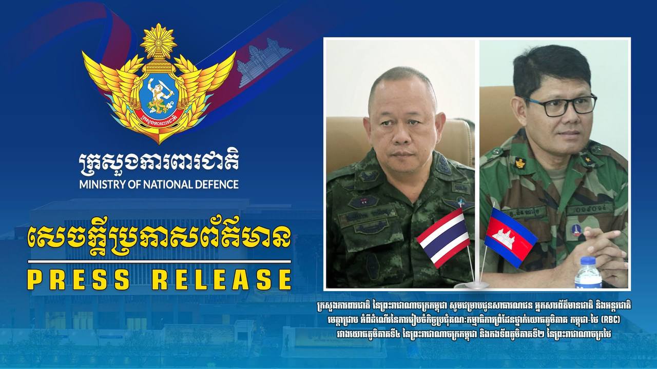 The Ministry of National Defence of the Kingdom of Cambodia wishes to inform the public, both domestic and international media outlets, on the preparatory progress of the Regional Border Committee (RBC) meeting between Cambodia’s Military Region 4 and Thailand’s Army Area 2.