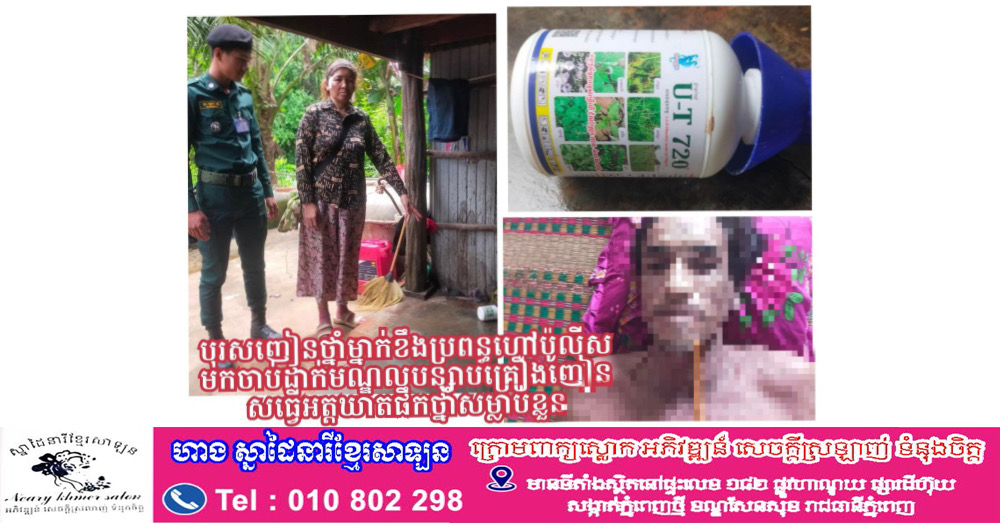ខេត្តបាត់ដំបង៖ បុរសដែលគេស្គាល់ថាជាមនុស្សញៀនថ្នាំម្នាក់ ព្រោះតែខឹងប្រពន្ធហៅប៉ូលីសមកចាប់ដាក់មណ្ឌលបន្សាបគ្រឿងញៀន ក៏សម្រេចធ្វើអត្តឃាតដោយផឹកថ្នាំសម្លាប់ខ្លួន។