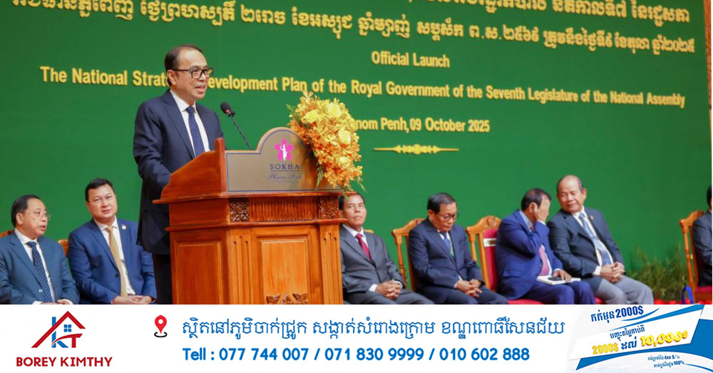 ភ្នំពេញ៖ លោក វង្សី វិស្សុត ឧបនាយករដ្ឋមន្រ្តីប្រចាំការ រដ្ឋមន្រ្តីទទួលបន្ទុកទីស្តីការគណៈរដ្ឋមន្រ្តី តំណាងដ៏ខ្ពង់ខ្ពស់សម្តេចមហាបវរធិបតី ហ៊ុន ម៉ាណែត នាយករដ្ឋមន្ត្រីនៃព្រះរាជាណាចក្រកម្ពុជា នាព្រឹកថ្ងៃទី៩ ខែតុលា ឆ្នាំ២០២៥ បានអញ្ជើញជាអធិបតីក្នុងពិធីប្រកាសផ្សព្វផ្សាយដាក់ឱ្យប្រើប្រាស់ជាផ្លូវការ «ផែនការ យុទ្ធសាស្ត្រអភិវឌ្ឍន៍ជាតិរបស់រាជរដ្ឋាភិបាល នីតិកាលទី៧ នៃរដ្ឋសភា» ដោយមានការអញ្ជើញចូលរួមពីសំណាក់ លោកទេសរដ្ឋមន្ត្រី រដ្ឋមន្ត្រី ដែលជាសមាជិករាជរដ្ឋាភិបាល លោក លោកស្រី សមាជិក សមាជិកា ព្រឹទ្ធសភា រដ្ឋសភា និងតំណាងក្រសួង ស្ថាប័ន ឯកអគ្គរាជទូត ឯកអគ្គរដ្ឋទូត អភិបាលនៃគណៈអភិបាលរាជធានី ខេត្ត ព្រមទាំងលោក លោកស្រី តំណាងដៃគូអភិវឌ្ឍន៍ អង្គការសង្គមស៊ីវិល សរុបចំនួន ៨២៩រូប។