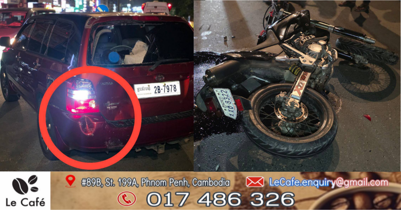 ភ្នំពេញ៖​ បុរសម្នាក់បានជិះម៉ូតូលឿនមិនប្រយ័ត្នចាប់ហ្វ្រាំងមិនទាន់ជ្រុលបុករថយន្តហាយឡែនឌ័រឆ្លងផ្លូវបណ្តាលឲ្យបោកក្បាលនិងកញ្ចក់រថយន្តស្លាប់ភ្លាមៗ។