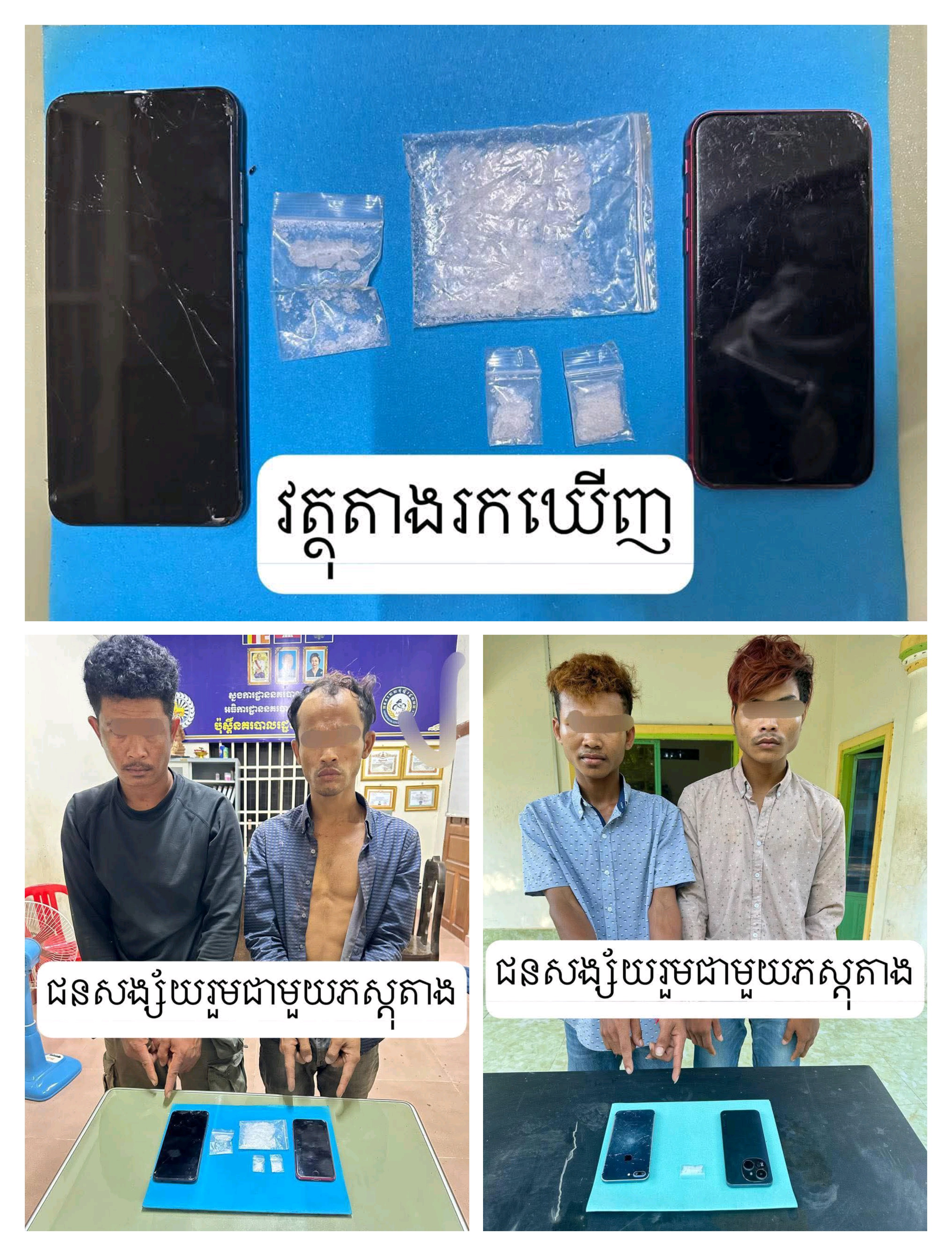ខេត្តកំពង់ស្ពឺ៖ ដោយមានការបញ្ជាដឹកនាំពីលោកឧត្ដមសេនីយ៍ទោ ឃឹម សុកខៃ ស្នងការនគរបាលខេត្ដកំពង់ស្ពឺ កំលាំងនគរបាលប្រឆាំងគ្រឿងញៀនខេត្ដដឹកនាំដោយលោកវរសេនីយ៍ទោ ហ៊ាង ឈាងលី ស្នងការរង ស្ដីទី ផែនការងារប្រឆាំងគ្រឿងញៀនខេត្ដ ចុះសហការស្រាវជ្រាវនិងបង្រ្កាបបានមុខសញ្ញាសង្ស័យក្នុងការរក្សាទុកសារធាតុញៀនដោយខុសច្បាប់២ករណីឃាត់មុខសញ្ញា ៤នាក់រួមនិងវត្ថុតាង ៖