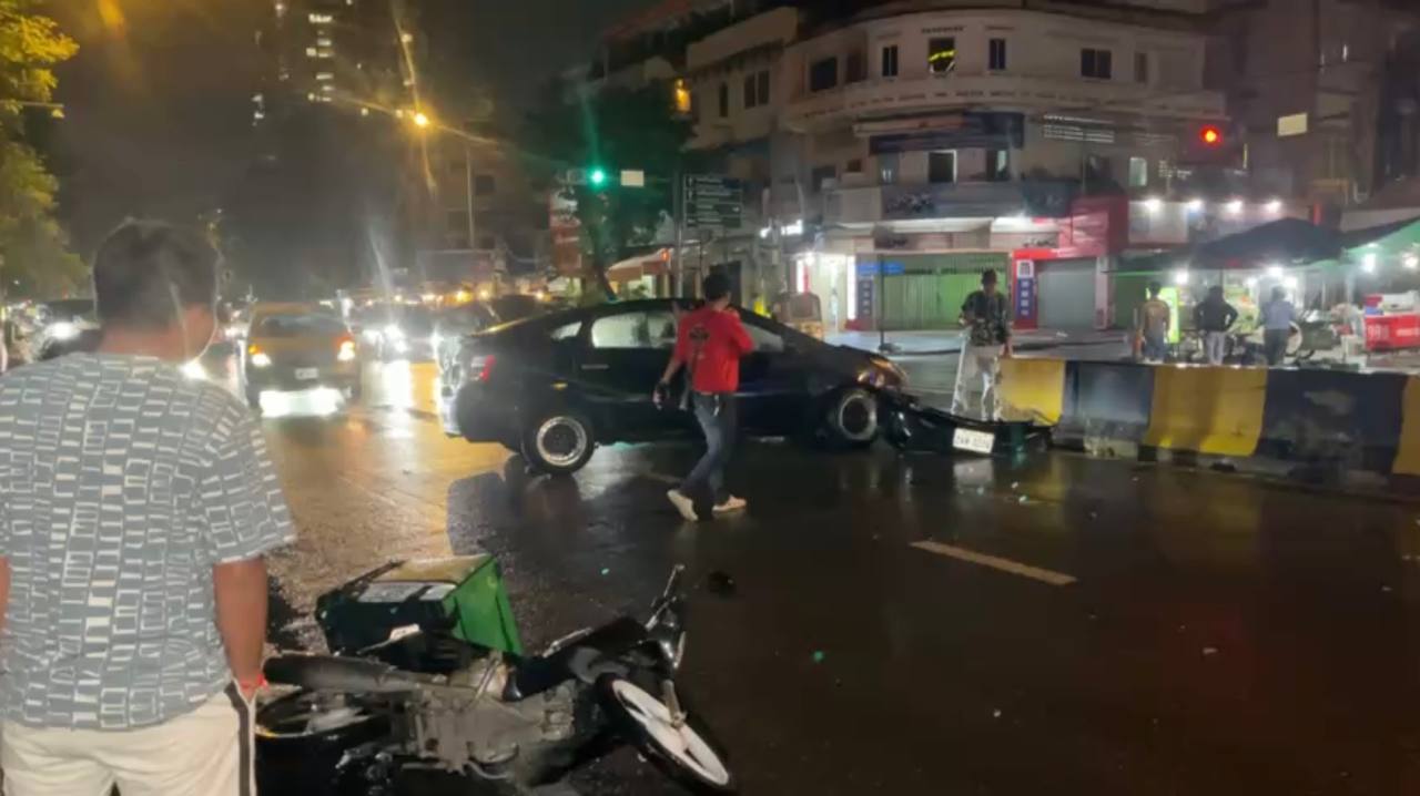 តាម ប្រភព ព័ត៌មានពី កន្លែងកើតហេតុបានអោយ ដឹង ថា មុន ពេលកេីតហេតុ គេបានឃើញបុរស ជនជាតិ ចិនម្នាក់ បានបេីករថយន្តម៉ាក toyota prius ពណ៌ ខ្មៅ ពាក់ ស្លាក លេខ ភ្នំពេញ 2AW 3236 បេីកធ្វើ ដំណើរតាម បណ្ដោយ ផ្លូវ ព្រះ សីហនុទិសដៅ ពីលិចទៅកេីត ក្នុង ល្បឿន លឿន ហើយ មេឃ កំពុង តែភ្លៀងលុះមកដល់ចំនុចកេីតហេតុ ក៏ជ្រុល ទៅបុកនិងក្បាលនាគថ្ម ពុះចែកផ្លូវយ៉ាងពេញទំហឹង បណ្ដាល ឲ្យ ខ្ទាតរលំ ទ្រង់ទ្រាយដើម អស់ចំនួន ២កង់ព្រម ទាំងធ្វើ រថយន្តខ្ទាតទៅ ប៉ះម៉ូតូហុងដាឌ្រីម ពណ៌ ខ្មៅពាក់ ស្លាក លេខ ភ្នំពេញ 1JG 8133 ដែរ ជិះ ដោយបុរស ម្នាក់ជាអ្នក ដឹក ជញ្ជូន អនឡាញ ធ្វើ ដំណើរ ក្នុងទិសដៅស្របគ្នាបណ្តាល ឲ្យ ដួល ម៉ូតូ រងការ ខូចខាត និង មនុស្ស របួសតិចតួច មិន ទៅ មន្ទីរពេទ្យ នោះ ទេ ។