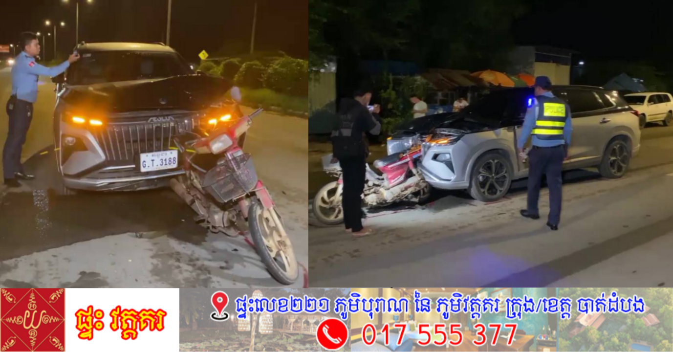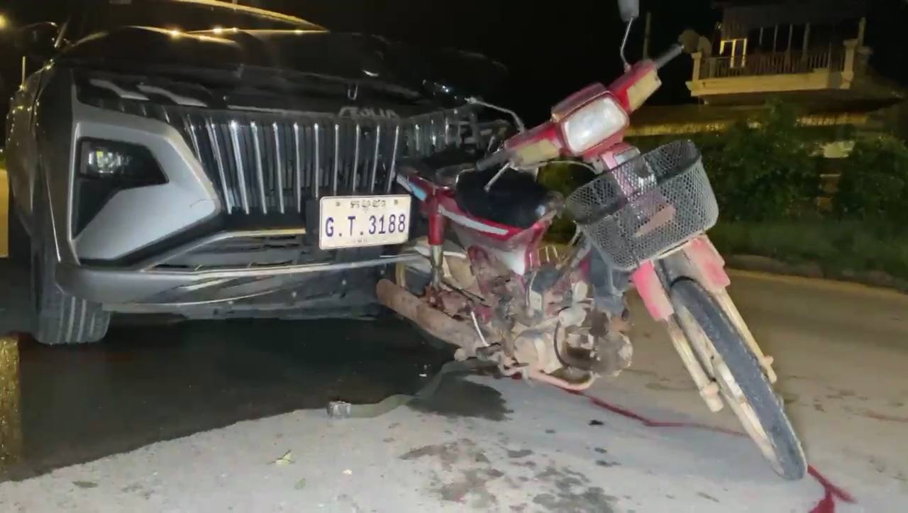 ភ្នំពេញ៖ ជនជាតិចិនបានបេីករថយន្តម៉ាក DOGNFENG សេ៊រីទំនើបជ្រុលទៅបុកម៉ូតូសង់កូរ៉េដែលជិះដោយឪពុកនិងកូន២នាក់ពីក្រោយយ៉ាងពេញទំហឹង បណ្ដាលឲ្យបុរសជាឪពុកបោកក្បាលស្លាប់ ចំណែកកូនប្រុសវ័យប្រហែល៥ឆ្នាំ រងរបួសធ្ងន់។