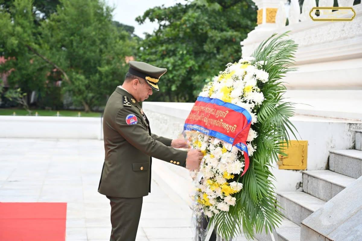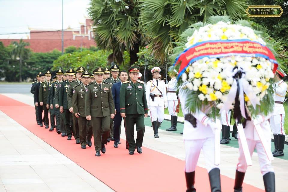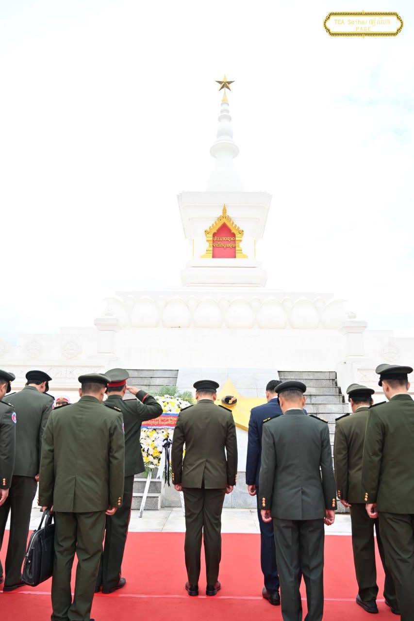 សូមបញ្ជាក់ថា ៖ ថ្ងៃអង្គារ ៧ រោច ខែអស្សុជ ឆ្នាំម្សាញ់ សប្តស័ក ពុទ្ធសករាជ ២៥៦៩ ត្រូវនឹងថ្ងៃទី១៤ ខែតុលា ឆ្នាំ២០២៥ លោក នាយឧត្តមសេនីយ៍ ទៀ សីហា ឧបនាយករដ្ឋមន្ត្រី រដ្ឋមន្ត្រីក្រសួងការពារជាតិ ដឹកនាំគណៈប្រតិភូជាន់ខ្ពស់ ក្រសួងការពារជាតិ ចូលដាក់កម្រងផ្កា និងគោរពវិញ្ញាណក្ខន្ធ នៅស្តូបយុទ្ធជន នីលាក់ណាម រដ្ឋធានីវៀងចន្ទន៍ សាធារណរដ្ឋ ប្រជាធិបតេយ្យ ប្រជាមានិត ឡាវ ៕