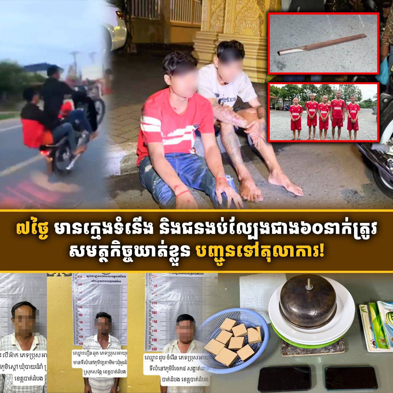 សូមបញ្ជាក់ថា ករណីក្មេងទំនើង និងល្បែងស៊ីងសងខុសច្បាប់ ដែលសមត្ថកិច្ចបង្ក្រាបបានរយៈពេល៧ថ្ងៃនោះ មានក្នុងមូលដ្ឋាន រាជធានីភ្នំពេញ ខេត្តកណ្ដាល កំពត កំពង់ស្ពឺ កំពង់ធំ កំពង់ចាម ក្រចេះ ពោធិ៍សាត់ និងខេត្តត្បូងឃ្មុំ៕