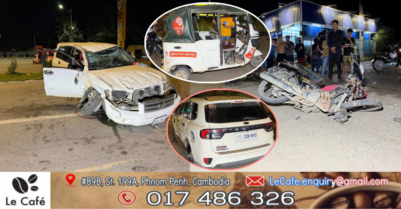 ប្រភពព័ត៌មានបានអោយដឹងថា មុនពេលកើតហេតុមានប្រពលរដ្ឋបានឃើញ យុវជន ម្នាក់ បាន ស្លាប់ និង ម្នាក់ រងរបួស ធ្ងន់ បន្ទាប់ ពី ជិះ ម៉ូតូ HONDA Dream ពាក់ ផ្លាក លេខ សៀមរាប 1AN-2460 ជិះ ឌុប គ្នា ត្រូវ រថយន្ដ Highlander ពាក់ ផ្លាក លេខ ភ្នំពេញ 2AN-2660 នៅ តាម បណ្ដោយ ផ្លូវ បេតុង៣០ម៉ែត្រ បុរី សន្តិភាព សង្កាត់ ចោមចៅ ទី២ ខណ្ឌ ពោធិ៍ សែន ជ័យ រួច រថយន្ដ Highlander ព្យាយាម បេីក រត់ គេច ខ្លួន រហូត មក ដល់ ស្តុប វត្ត ស្លែង បាន ជ្រុល ទៅ បុក រថយន្ដ Ford EVEREST ពាក់ ផ្លាក លេខ ភ្នំពេញ 2CB-4443 ដែល កំពុង ឈប់ ស្តុប បណ្ដាលឲ្យ រថយន្ដ របស់ ខ្លួន ក្រឡាប់ ទៅ បុក ប៉ះ កង់បី ឥណ្ឌា ពាក់ ផ្លាក លេខ កំពង់ ចាម 1AF-0306 និង រថយន្ដសង្រ្គោះរបស់ មន្ទីរពេទ្យ បង្អែកខេត្ត កំពត ពាក់ ផ្លាក លេខ រដ្ឋ12 2-3255 បន្ថែម ទៀត ចំណែក ឯ តៃកុង រថយន្ដ បង្ក ត្រូវ សមត្ថកិច្ច ឃាត់ យក ទៅ ប៉ុស្តិ៍ ដេីម្បី ធ្វើ ការ សាកសួរ និង បន្ត តាម នីតិវិធី ច្បាប់ ។