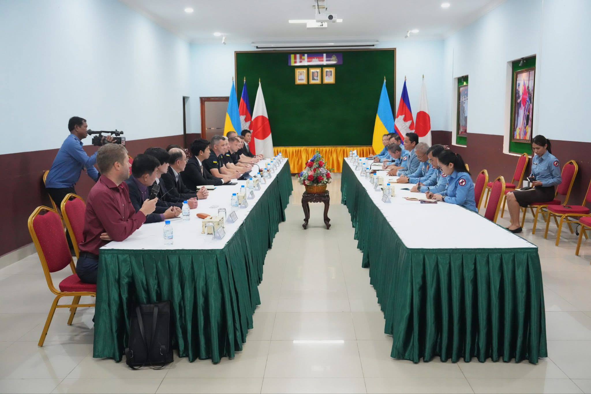 ភ្នំពេញ៖ នៅទីបញ្ជាការស៊ីម៉ាក់ភ្នំពេញ លោក ហេង រតនា ប្រធានអង្គភាពស៉ីម៉ាក់ នៅព្រឹកថ្ងៃសុក្រ ១០រោច ខែអស្សុជ ឆ្នាំម្សាញ់ សប្តស័ក ព.ស២៥៦៩ ត្រូវនឹងថ្ងៃទី១៧ ខែតុលា ឆ្នាំ២០២៥ បានទទួលស្វាគមន៍ និងជួបពិភាក្សាការងារជាមួយលោក Reva Serhii ប្រធានក្រុមគណប្រតិភូ”អង្គភាពផ្តល់សេវាកម្មរដ្ឋក្នុងគ្រាអាសន្នសម្រាប់ប្រទេសអ៊ុយក្រែន (SESU)” ដើម្បីសិក្សាស្វែងយល់បន្ថែមពីវិស័យសកម្មភាពមីននៅកម្ពុជា ជាពិសេសអំពីបទពិសោធន៍ប្រកបដោយភាពជោគជ័យប្រសិទ្ធភាពខ្ពស់ទាំងការទទួលស្គាល់ជាសកល នៃកិច្ចប្រតិបត្តិការបោសសម្អាតមីនរបស់អង្គភាពCMAC។ ក្នុងជំនួបនេះដែរ ក៏មានការអញ្ជើញចូលរួមពីសំណាក់លោកHIJIKAWA Kento លេខាទី២ ស្ថានទូតជប៉ុនប្រចាំកម្ពុជា និងតំណាងទីភ្នាក់ងារសហប្រតិបត្តិការអន្តរជាតិជប៉ុន(JICA) ប្រចាំកម្ពុជា ។
