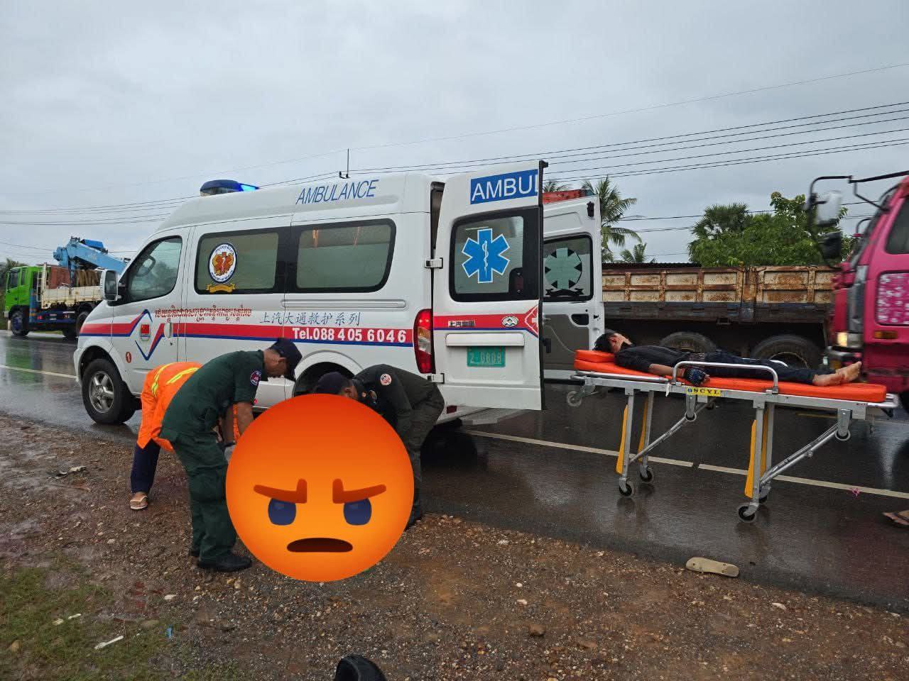 អ្នករួមដំណើរ បានរងរបួសធ្ងន់ ហើយត្រូវបានបញ្ជូនទៅមន្ទីរពេទ្យខេត្តកែប។ ក្រោយមកត្រូវបញ្ជូនបន្តទៅមន្ទីរ ពេទ្យខេត្តកំពត ហើយក៏បានស្លាប់បាត់បង់ជីវិតដែរ។