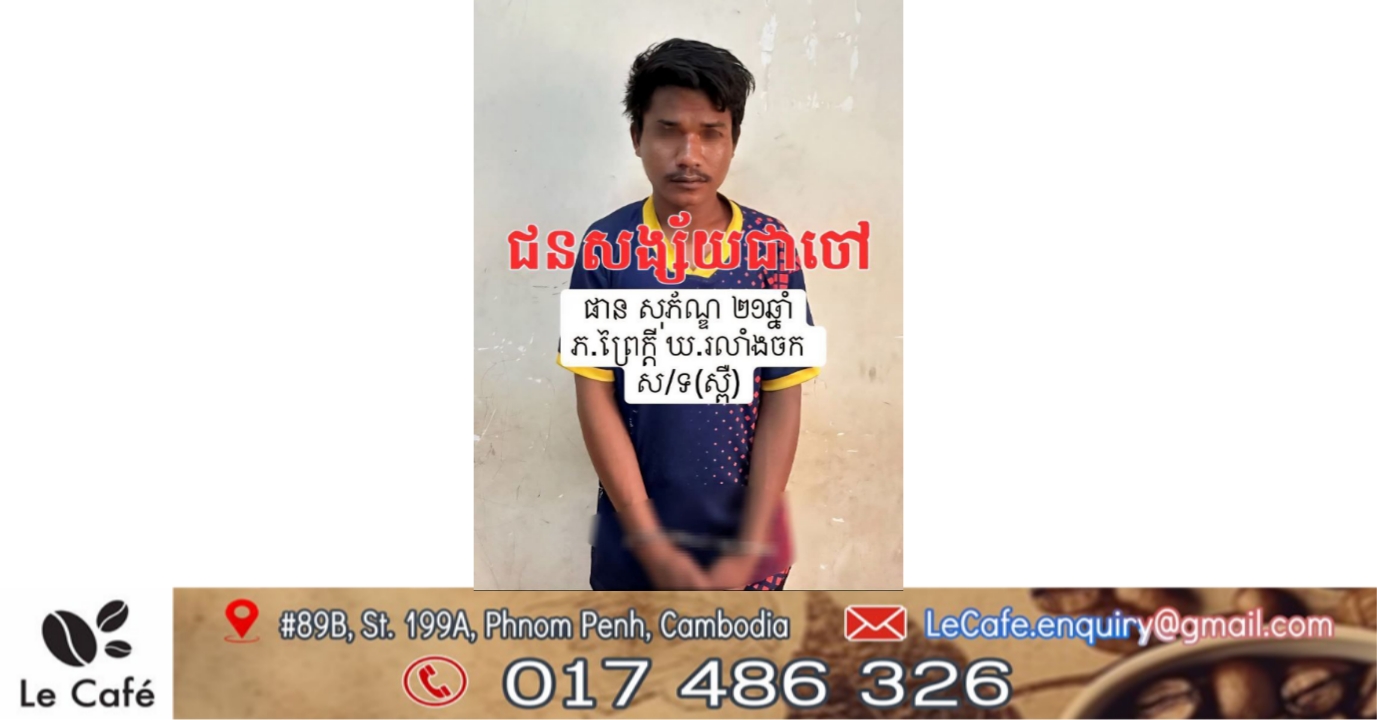 ខេត្តកំពង់ស្ពឺ ÷ នៅថ្ងៃទី២១ ខែតុលា ឆ្នាំ២០២៥ វេលាម៉ោង៧ព្រឹក មានឈ្មោះ សុន ង៉ែត ភេទស្រី អាយុ៤៥ឆ្នាំ នៅភូមិព្រៃក្តី ឃុំរលាំងចក ស្រុកសំរោងទង ខេត្តកំពង់ស្ពឺ បានមកដាក់ពាក្យបណ្តឹងទៅលើឈ្មោះ ផាន សុភ័ណ្ឌ ភេទប្រុស អាយុ២១ឆ្នាំ នៅភូមិព្រៃក្ដី ឃុំរលាំងចក ស្រុកសំរោងទង។