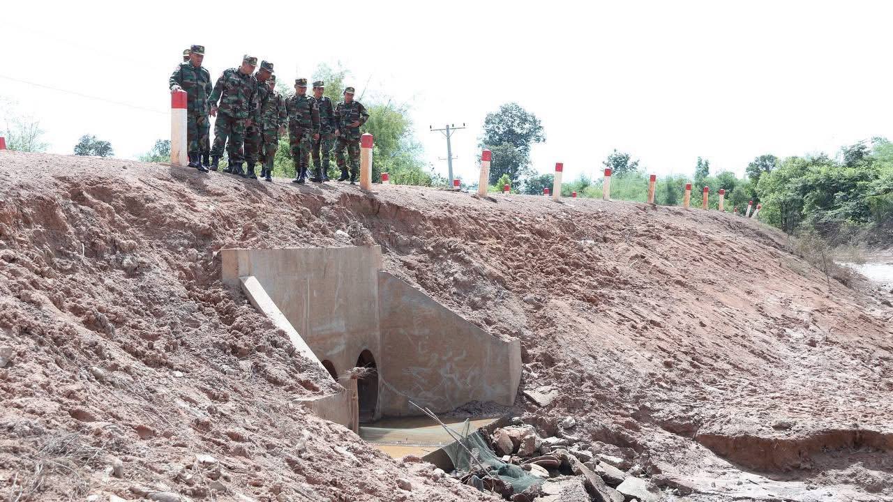 ខេត្តកំពង់ធំ៖ លោកឧត្តមសេនីយ៍ទោ សោម ស៊ុន មេបញ្ជាការតំបន់ប្រតិបត្តិការសឹករងកំពង់ធំ អនុប្រធានក្រុមការងាររាជរដ្ឋាភិបាលចុះមូលដ្ឋានស្រុក និងជាប្រធានក្រុមការងាររបស់រាជរដ្ឋាភិបាលចុះមូលដ្ឋានឃុំដងកាំបិត ស្រុកសណ្ដាន់ ខេត្តកំពង់ធំ នៅថ្ងៃទី២២ ខែតុលា ឆ្នាំ២០២៥ បានដឹកនាំសហការីទៅត្រួតពិនិត្យស្ថានភាពផ្លូវលំក្រាលក្រួសក្រហមមួយខ្សែដែលរងការខូចខាត ប្រវែងជាង ៥០០ម៉ែត្រដោយសារជំនន់ទឹកភ្លៀងនៅក្នុងរដូវវស្សាឆ្នាំ២០២៥ កន្លងទៅនេះ នៅតំបន់អូរពពេល ឃុំដងកាំបិត ស្រុកសណ្ដាន់ ខេត្តកំពង់ធំ ។