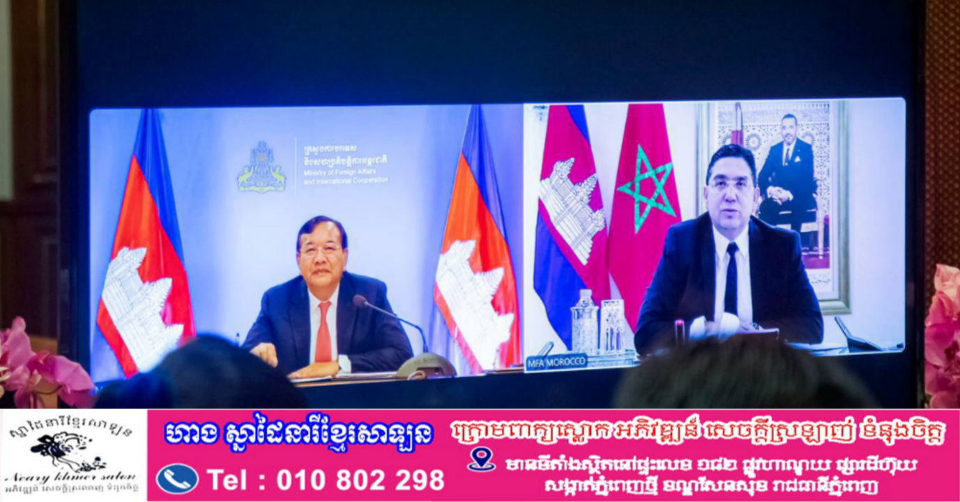 ភ្នំពេញ៖ លោកឧបនាយករដ្ឋមន្ត្រី ប្រាក់ សុខុន រដ្ឋមន្ត្រីការបរទេស និងសហប្រតិបត្តិការអន្តរជាតិ នៃព្រះរាជាណាចក្រ កម្ពុជា បានជួបពិភាក្សាការងារតាមប្រព័ន្ធវីដេអូជាមួយ លោក Nasser BOURITA រដ្ឋមន្ត្រីក្រសួងការបរទេស សហប្រតិបត្តិការអាហ្វ្រិក និងជនអន្តោប្រវេសន៍ម៉ារ៉ុក នៃព្រះរាជាណាចក្រម៉ារ៉ុក ដើម្បីបង្កើនទំនាក់ទំនងកិច្ចសហ ប្រតិបត្តិការ និងមិត្តភាពរវាងព្រះរាជាណាចក្រទាំងពីរ។