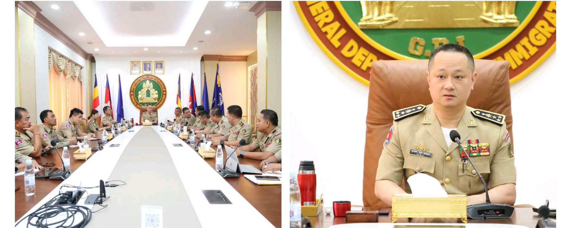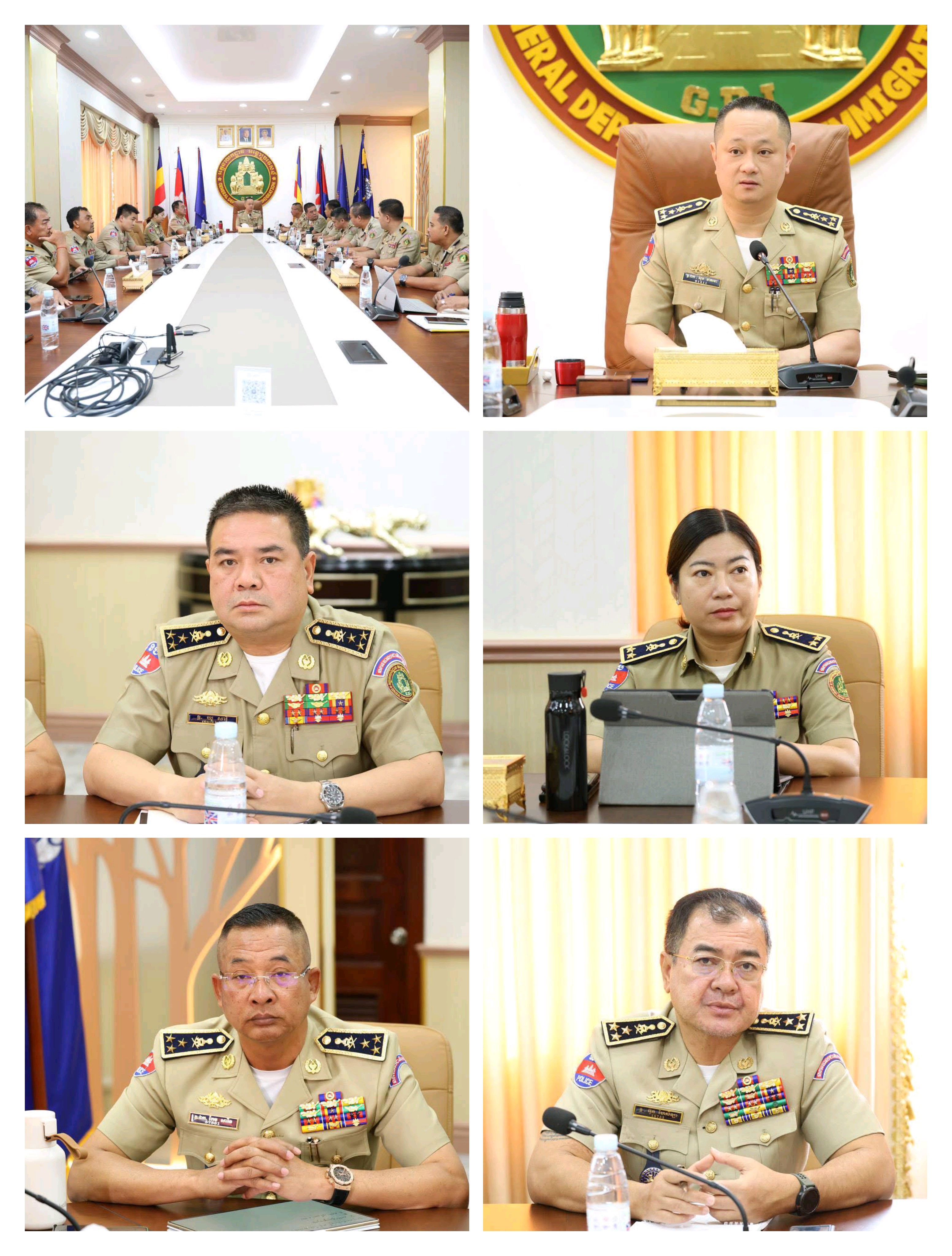 ភ្នំពេញ ៖ នៅព្រឹកថ្ងៃទី២៣ ខែតុលា ឆ្នាំ២០២៥ លោក ឧត្តមសេនីយ៍ឯក សុខ វាសនា អគ្គនាយក នៃអគ្គនាយកដ្ឋានអន្តោប្រវេសន៍ បានដឹកនាំកិច្ចប្រជុំពិភាក្សា ដោយមានវត្តមានចូលរួមពី អគ្គនាយករង ប្រធាននាយកដ្ឋាន អនុប្រធាននាយកដ្ឋាន នាយ-នាយរងការិយាល័យពាក់ព័ន្ធ នៃនាយកដ្ឋានស៊ើបអង្កេត និងអនុវត្តនីតិវិធី និងនាយកដ្ឋានបច្ចេកវិទ្យាព័ត៌មានអន្តោប្រវេសន៍ ។