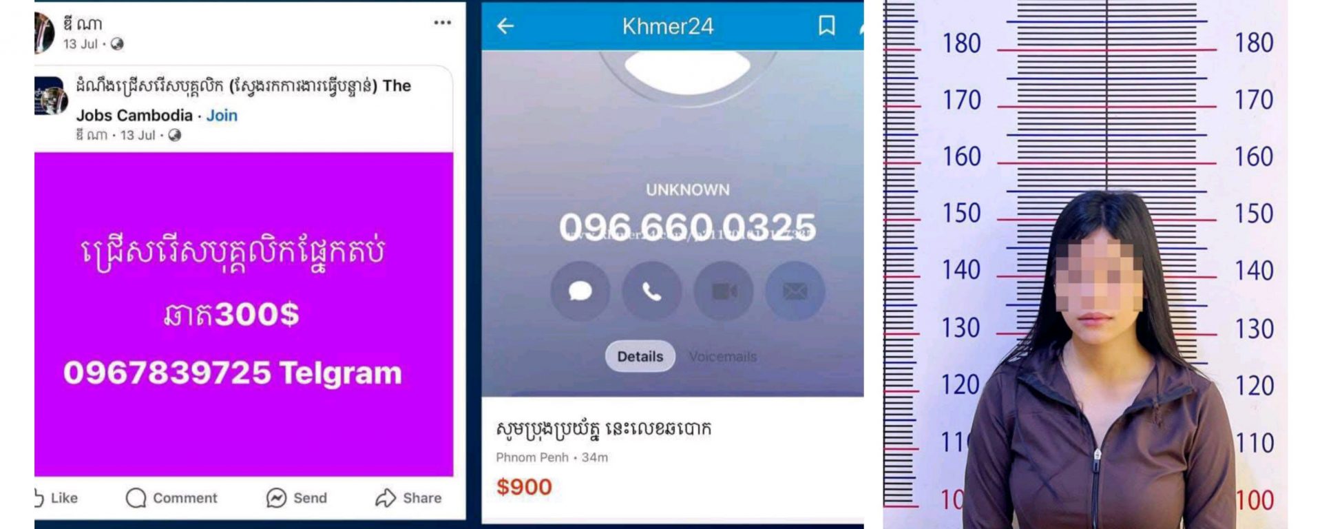 ដោយមានការសម្របសម្រួលពី ព្រះរាជអាជ្ញាអមសាលាដំបូងរាជធានីភ្នំពេញ នាយកដ្ឋានបានឃាត់ខ្លួនជនសង្ស័យ ០១នាក់ ឈ្មោះ ព.ដ.ន ភេទស្រី ជនជាតិខ្មែរ។ តាមរយៈការស្រាវជ្រាវ សមត្ថកិច្ចកំណត់បានថា ជនសង្ស័យរូបនេះ ត្រូវបានជនអនាមិកអូសទាញឱ្យធ្វើសកម្មភាពទទួល និងផ្ទេរប្រាក់តាមគណនីធនាគារជាបន្ដបន្ទាប់ ហើយបានទទួលផលប្រយោជន៍ពីអំពើទុច្ចរិតនេះ។ ក្នុងនោះដែលគណនីហ្វេសប៊ុករបស់ជនអនាមិកនៅតែបន្ដបង្ហោះផ្សព្វផ្សាយទិញ-លក់ទូរស័ព្ទ និងស្វែងរកអ្នកចូលរួមធ្វើសកម្មភាពទទួលប្រាក់ និងតបឆាត តាមរយៈលេខទូរស័ព្ទ ០៩៦ ៦៦០ ០៣២៥, ០៩៦ ៧៨៣ ៩៧២៥ និងបានឱ្យQR Codeរបស់គណនីធនាគារផ្សេងៗ តាមបណ្ដាញសង្គមនានា ក្នុងគោលបំណងជ្រើរើសបុគ្គលិកសម្រាប់ការងារ។