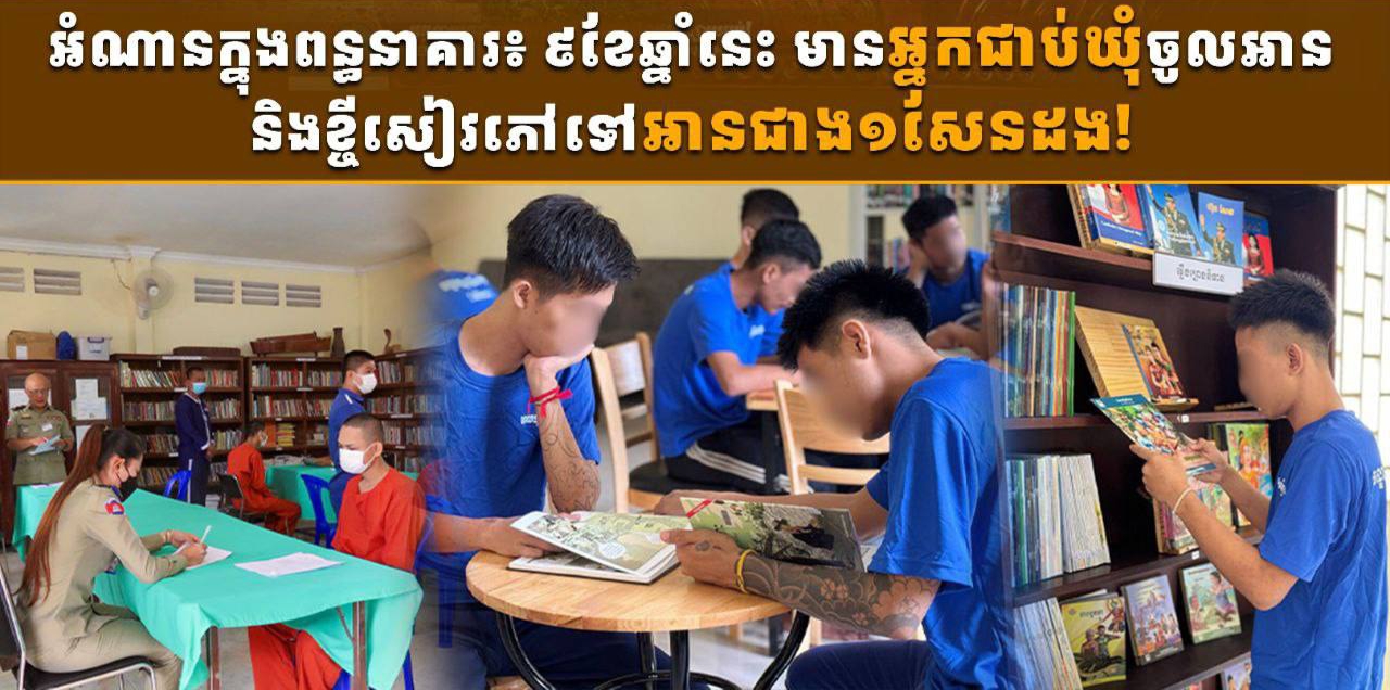 ភ្នំពេញ ៖ ក្នុងរយៈពេល៩ខែ ដើមឆ្នាំ២០២៥នេះ មានអ្នកជាប់ឃុំនៅតាមពន្ធនាគារ និងមណ្ឌលអប់រំកែប្រែនៅទូទាំងប្រទេស បានចូលបណ្ណាល័យអានសៀវភៅចំនួន៦៤.៦៩២នាក់ ក្នុងនោះមានស្ត្រី៧.៤៣៦នាក់។ មិនត្រឹមតែចូលអានសៀវភៅក្នុងបណ្ណាល័យប៉ុណ្ណោះទេ អ្នកជាប់ឃុំក៏បានខ្ចីសៀវភៅពីបណ្ណាល័យ យកទៅអានក្នុងបន្ទប់ឃុំឃាំងដែរ បើតាមឯកឧត្តម ឧត្តមអគ្គានុរក្សថ្នាក់លេខ១ ឈន សាណាត អគ្គនាយក នៃអគ្គនាយកដ្ឋានពន្ធនាគារ នៃក្រសួងមហាផ្ទៃ ៩ខែមកនេះ មានអ្នកជាប់ឃុំបានខ្ចីសៀវភៅទៅអានចំនួន ៩៩.៩៩២នាក់ ក្នុងនោះមានស្តី្រ១៣.២៩៦នាក់។ ជនជាប់ឃុំទាំងនោះ បានចូលអាន និងខ្ចីសៀវភៅទៅអាន សរុបចំនួនដល់ទៅជាង៨ម៉ឺន៤ពាន់ក្បាលឯណោះ។