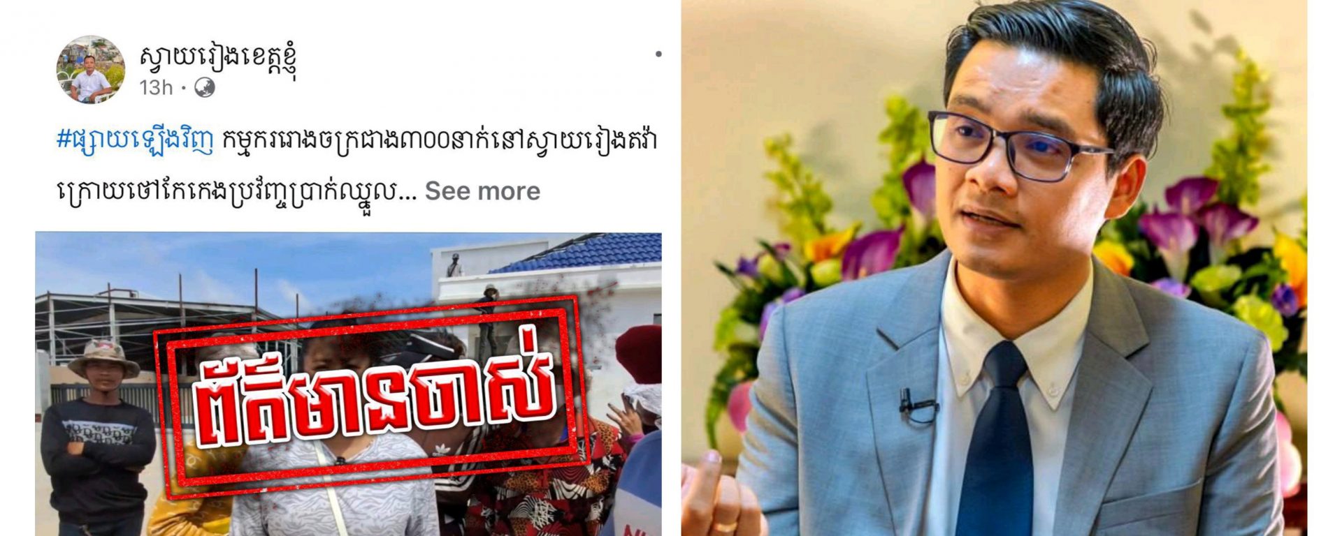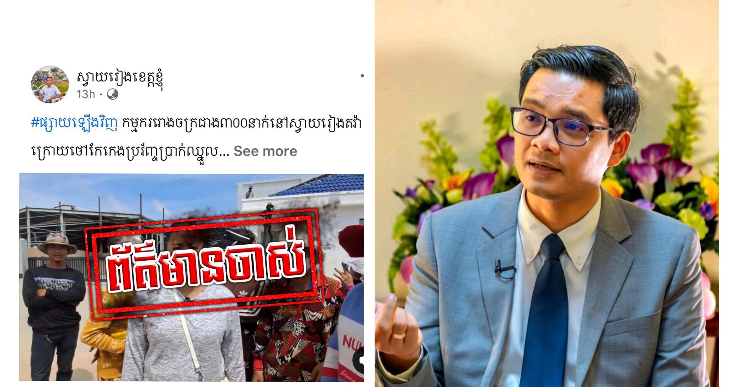 ភ្នំពេញ៖ ការិយាល័យអ្នកនាំពាក្យក្រសួងការងារ និងបណ្ដុះបណ្ដាលវិជ្ជាជីវៈ បានស្នើឱ្យម្ចាស់ទំព័រហ្វេសប៊ុកឈ្មោះ «ស្វាយរៀងខេត្តខ្ញុំ» សូមលុបវីដេអូចាស់ទាក់ទងនឹងការតវ៉ារបស់កម្មករ-កម្មការិនី នៅរោងចក្រ ថូនវីន ជាបន្ទាន់ ព្រោះករណីនេះត្រូវបានដោះស្រាយចប់រួចរាល់ហើយ។