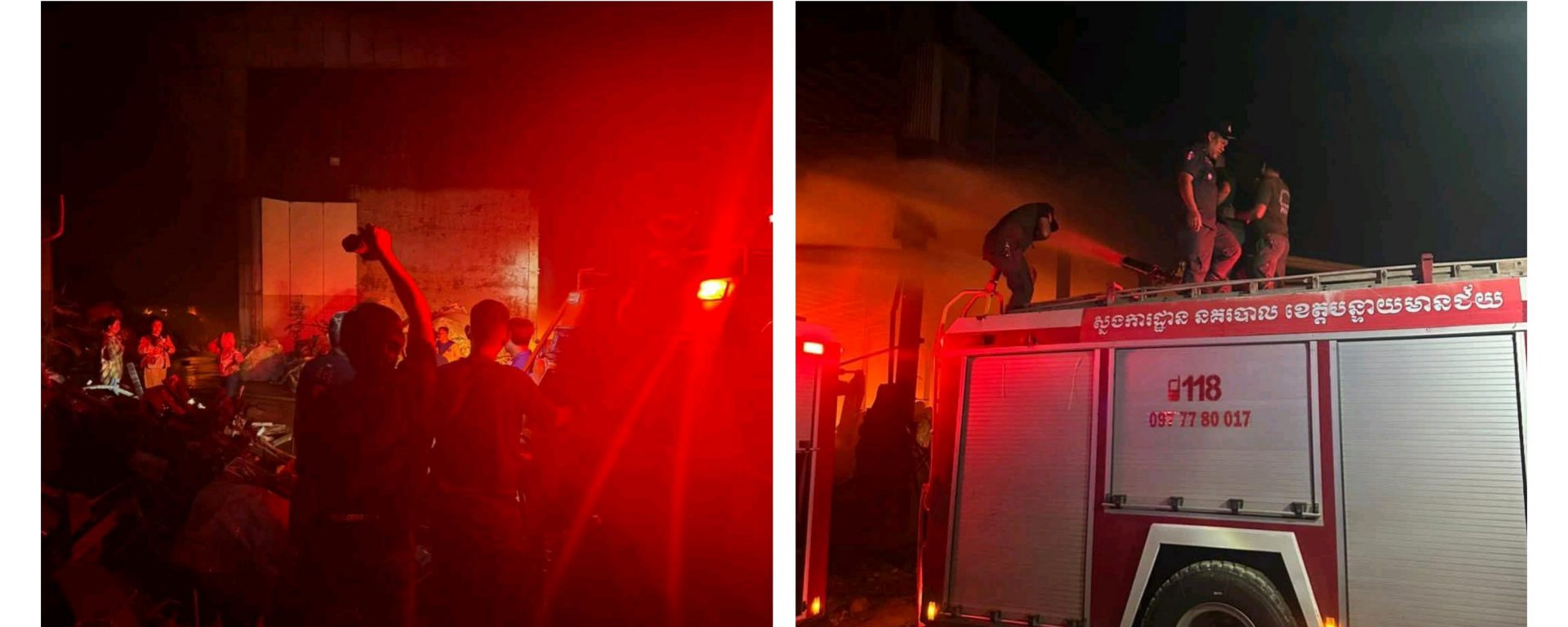 ខេត្តបន្ទាយមានជ័យ៖ ឃ្លាំងផ្ទុកអេចាយមួយកន្លែងឃ្លាំងមានទំហុំ ៤០ គុណ៦០ ម៉ែត្រឆ្លងចរន្តបង្កជាអគ្គីភ័យឆាបឆេៈនៅវេលាម៉ោង២៤និង៣៦នាទី យប់ថ្ងៃទី២៣ ខែតុលា ឆ្នាំ២០២៥ នៅចំណុចជិតវត្តផ្សារកណ្តាល ភូមិផ្សារកណ្តាល សង្កាត់ផ្សារកណ្តាល ក្រុងប៉ោយប៉ែត ។