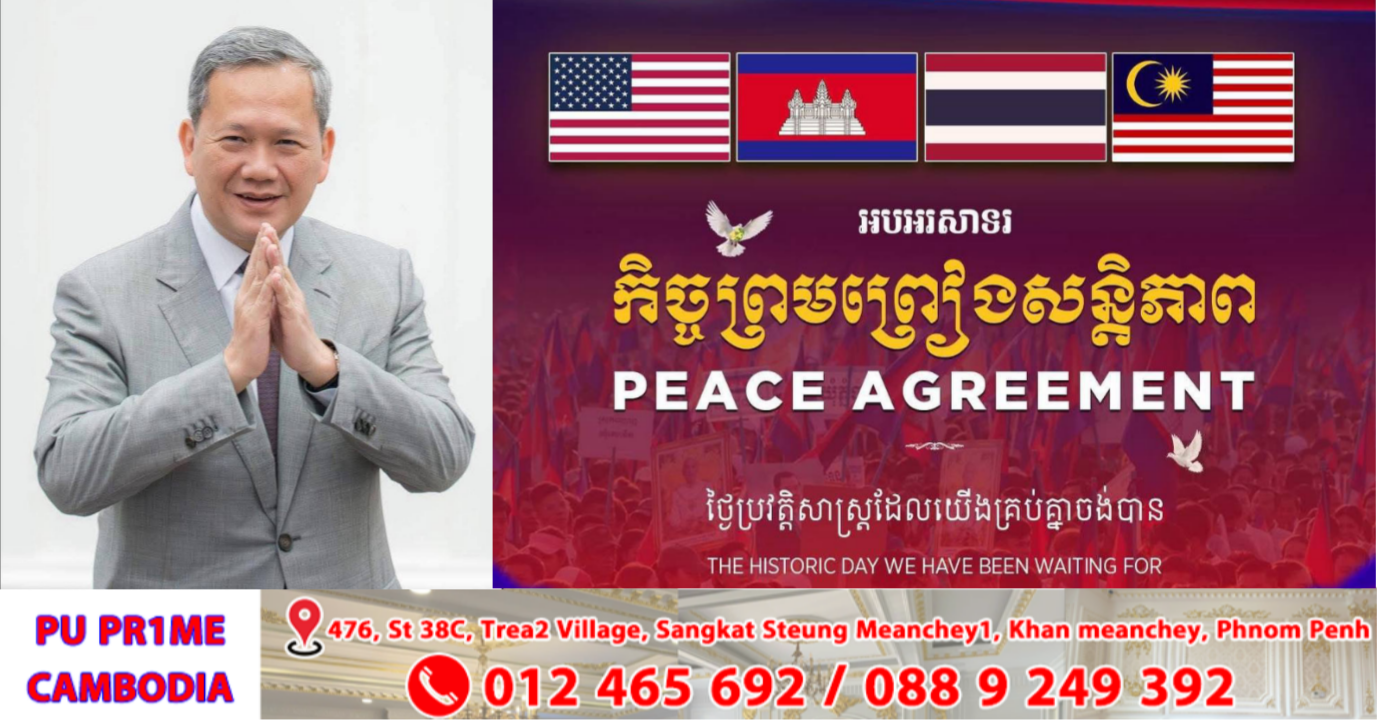 ភ្នំពេញ ៖ កិច្ចព្រមព្រៀង សន្តិភាព រវាង កម្ពុជា -ថៃ អាចនឹងត្រូវ ចុះហត្ថលេខា នៅក្នុង កិច្ច ប្រជុំ កំពូល អាស៊ាន នៅ ប្រទេស ម៉ាឡេស៊ី នាថ្ងៃ ទី ២៦ តុលា ឆ្នាំ ២០២៥ ក្រោមវត្តមាន លោក ប្រធានាធិបតី សហរដ្ឋ អាមេរិក ដូណាល់ ត្រាំ និង នាយករដ្ឋមន្ត្រី ម៉ាឡេស៊ី អាន់វ៉ា អ៉ី ប្រាហ៉ីម ធ្វើ ជាសាក្សី ។