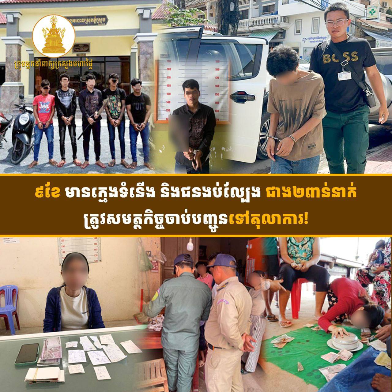បើគិតពីថ្ងៃអនុវត្តបទបញ្ជា សម្តេចមហាបវរធិបតី ហ៊ុន ម៉ាណែត នាយករដ្ឋមន្រ្តីនៃកម្ពុជា ពោលគឺចាប់ពីថ្ងៃទី២៣ ខែឧសភា ឆ្នាំ២០២៤ រហូតដល់ថ្ងៃទី១៥ ខែកញ្ញា ឆ្នាំ២០២៥នេះ សមត្ថកិច្ចនគរបាលជាតិ ចាប់ពីថ្នាក់អគ្គស្នងការ រហូតដល់ប៉ុស្តិ៍នគរបាលរដ្ឋបាល បង្ក្រាបក្រុមក្មេងទំនើង សរុប១.៥៨១ករណី ឃាត់ខ្លួនមនុស្សចំនួន ៥.៩៥៤នាក់។ ស្របតាមបទបញ្ជាដ៏ម៉ឺងម៉ាត់របស់ សម្ដេចធិបតី និងអនុវត្តតាមច្បាប់ដ៏រឹងមាំរបស់ជាតិ ឯកឧត្តមអភិសន្តិបណ្ឌិត ស សុខា ឧបនាយករដ្ឋមន្ត្រី រដ្ឋមន្ត្រីក្រសួងមហាផ្ទៃ បានកំពុងបង្កើនការយកចិត្តទុកដាក់ជាប្រចាំ ទាំងក្នុងភារកិច្ចដឹកនាំបញ្ជាបង្ការ ទប់ស្កាត់ និងបង្ក្រាបករណីក្មេងទំនើង ព្រមទាំងបោសសម្អាតល្បែងសុីសងគ្រប់ប្រភេទ៕