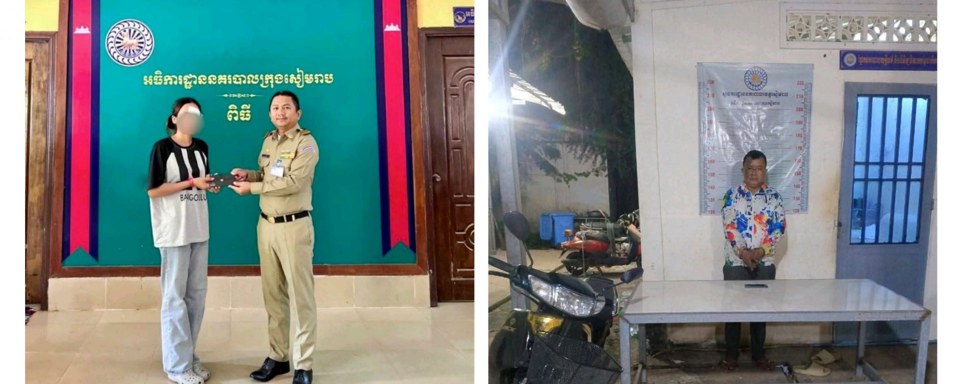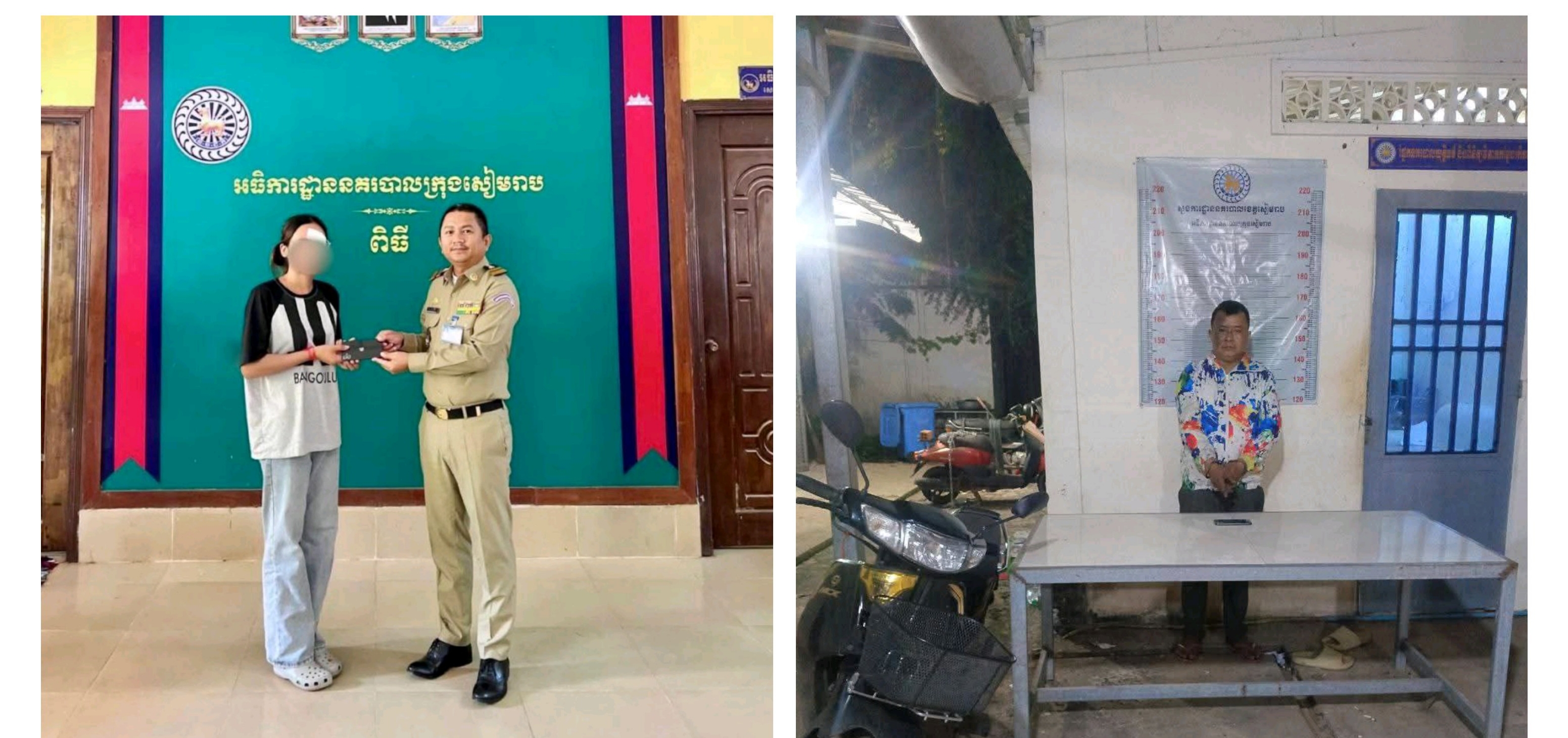 ក្រោយពីទទួលបណ្ដឹង និងសេចក្ដីរាយការណ៍ពីជនរង គ្រោះ លោកវរសេនីយ៍ឯក ដា ចំរើន អធិការ នៃអធិការដ្ឋាននគរបាលក្រុងសៀមរាប បានដឹកនាំកម្លាំងនគរបាល ចុះធ្វើការស្រាវជ្រាវរហូតដល់កំណត់មុខ សញ្ញាបាន នៅថ្ងៃទី២៤ ខែតុលា ឆ្នាំ២០២៥ វេលាម៉ោង ១៨ និង៣០នាទី ឃាត់ខ្លួនបានជនសង្ស័យមួយនាក់ មានឈ្មោះ ស៊ិន ពុទ្ធបញ្ញារិទ្ធ ភេទប្រុស អាយុ ៣៦ឆ្នាំ មុខរបរ ជាងដែក បច្ចុប្បន្នរស់នៅភូមិនគរក្រៅ សង្កាត់គោកចក ក្រុងសៀមរាប ខេត្តសៀមរាប (ជាមុខសញ្ញាចាស់ធ្លាប់ជាប់ពន្ធនាគារ ព្រៃស ពាក់ព័ន្ធករណីឆក់) យកទៅធ្វើការសួរនាំ។