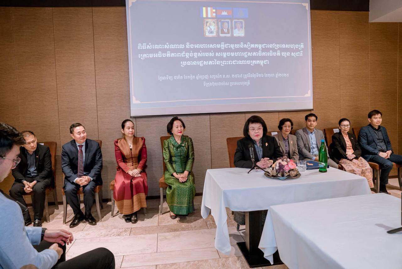 សម្តេចប្រធានរដ្ឋសភា បានគូសបញ្ជាក់ថា ក្មួយៗជានិស្សិតទាំងអស់ ដែលបានមកបន្តការសិក្សានៅបរទេស គឺជាទ្រព្យសម្បត្តិសំខាន់របស់ជាតិ ដែលមិនអាចកាត់ថ្លៃបាន ហើយចំណេះដឹងដែល ក្មួយៗទទួលបាននឹងរួមចំណែកយ៉ាងសំខាន់ដល់ការអភិវឌ្ឍសេដ្ឋកិច្ចសង្គមរបស់កម្ពុជា។ យុទ្ធសាស្ត្រអភិវឌ្ឍន៍របស់រដ្ឋាភិបាលកម្ពុជា រួមទាំងយុទ្ធសាស្ត្របញ្ចកោណដំណាក់កាលទី១ ក្រោមការដឹកនាំរបស់សម្តេចធិបតី ហ៊ុន ម៉ាណែត ដែលជាអ្នកបន្តវេនប្រកបដោយចំណេះដឹង សីលធម៌ ប្រកបដោយថាមវន្ត បានផ្តល់អាទិភាពដល់ប្រជាជន ផ្តោតលើការអភិវឌ្ឍមូលធនមនុស្សជាស្នូល ទាមទារឱ្យពលរដ្ឋមានចំណេះដឹងជំនាញច្បាស់លាស់ មានសុខភាពល្អ អត្តចរិតថ្លៃថ្នូរ មានការទទួលខុសត្រូវ ក្នុងការចូលរួមចំណែកដល់ការពង្រឹងខឿនសេដ្ឋកិច្ចជាតិ៕