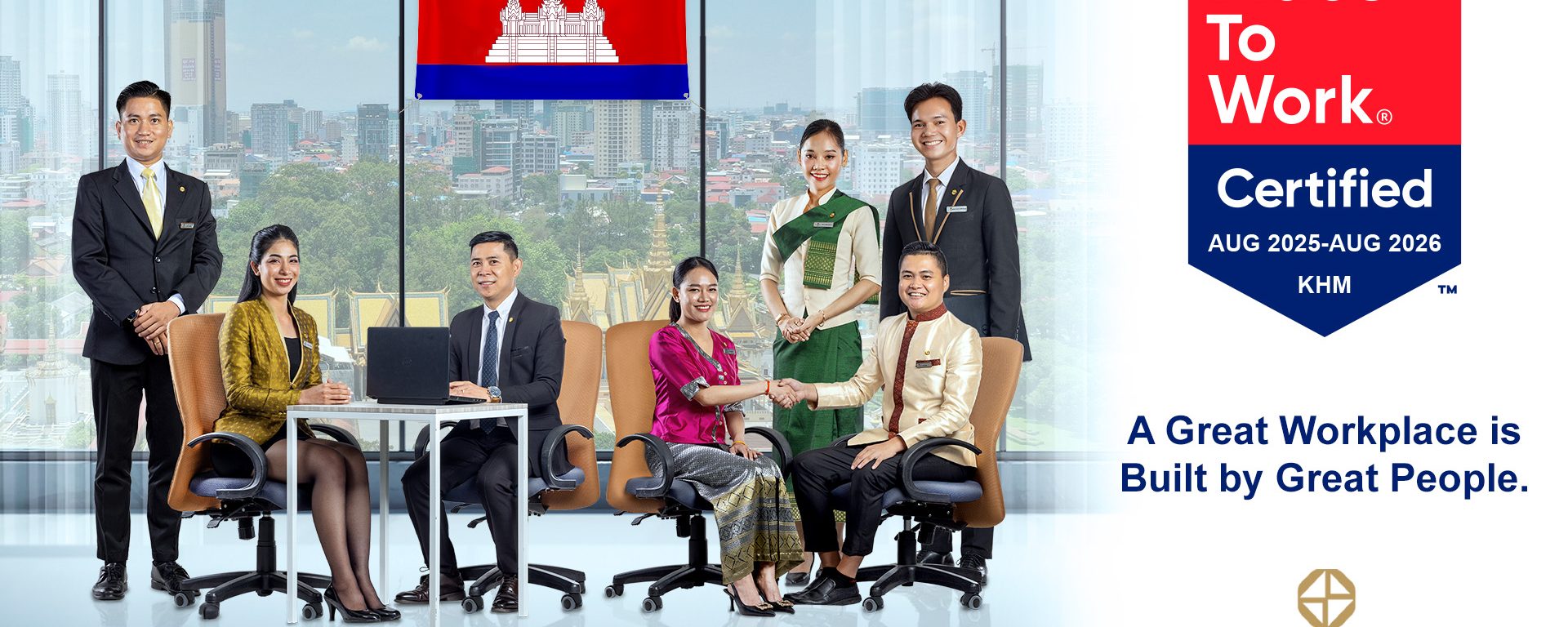 អំពីស្ថាប័ន GREAT PLACE TO WORK®ជាស្ថាប័នសកលដែលវាយតម្លៃទៅលើវប្បធម៌នៃកន្លែងធ្វើការ Great Place To Work® នាំយកបទពិសោធន៍នៃការសិក្សាស្រាវជ្រាវ និងប្រមូលទិន្នន័យអស់រយៈពេល ៣០ ឆ្នាំដើម្បីជួយកន្លែងធ្វើការនីមួយៗក្លាយជាកន្លែងធ្វើការដ៏អស្ចារ្យសម្រាប់ទាំងអស់គ្នា។ វេទិកា និងគំរូ For All™ របស់ពួកគេ ជួយក្រុមហ៊ុនឱ្យវាយតម្លៃបទពិសោធន៍របស់បុគ្គលិកគ្រប់រូបដែលកន្លែងធ្វើការគំរូ នឹងក្លាយជាកន្លែងធ្វើការដ៏អស្ចារ្យ (Great Place To Work Certified™) ឬទទួលបានការទទួលស្គាល់ជាកន្លែងធ្វើការល្អបំផុតនៅក្នុងបញ្ជី Best Workplaces™៕ដោយ​៖ស​ តារា​