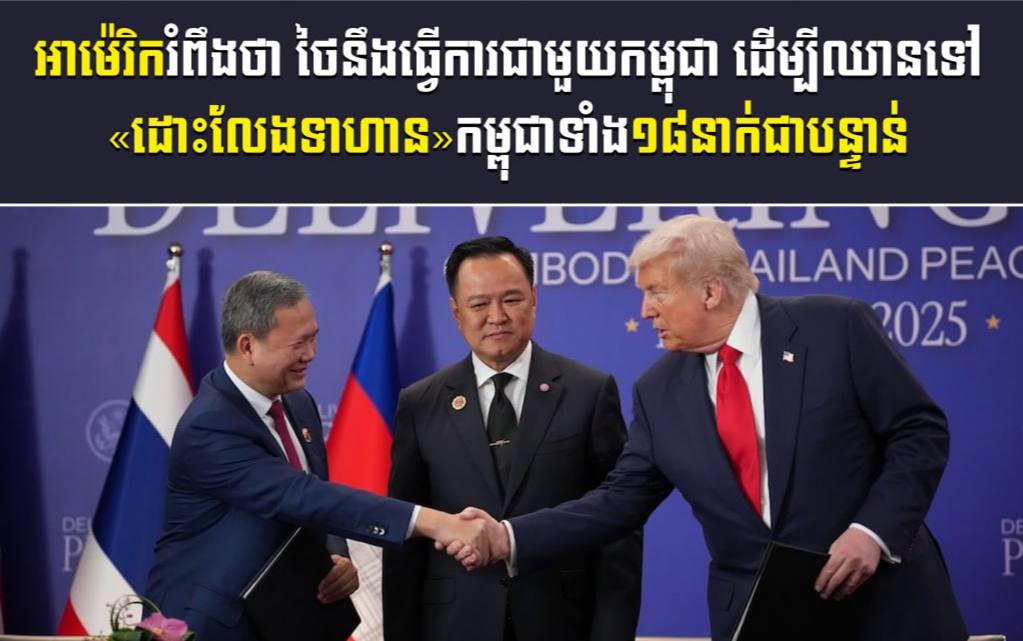 អាម៉េរិករំពឹងថា ប្រទេសថៃនឹងធ្វើតាមកិច្ចព្រមព្រៀង និង ដោះលែងទាហានកម្ពុជាទាំង១៨រូប ក្រោយកិច្ចព្រមព្រៀងត្រូវបានចូលជាធរមាន៕ដោយ៖តារា