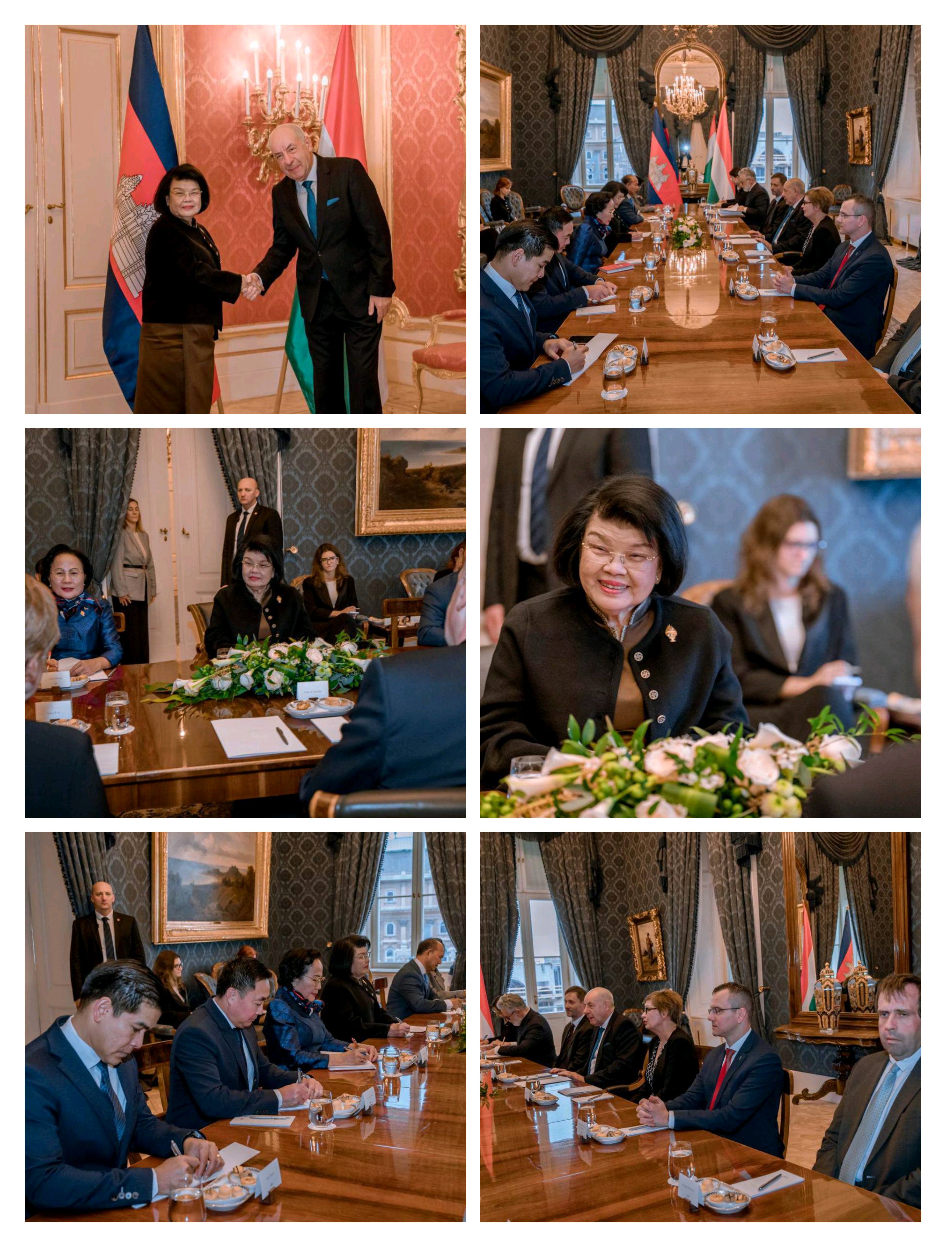 សម្តេចប្រធានរដ្ឋសភាក៏បានជម្រាបជូន លោកប្រធានាធិបតី ពីលទ្ធផលដំណើរទស្សនកិច្ចរបស់គណៈប្រតិភូរដ្ឋសភាកម្ពុជា នៅប្រទេសហុងគ្រី ដែលទទួលបានលទ្ធផលជាទីមោទនៈ នៅក្នុងនោះសម្តេចបានអញ្ជើញទស្សនា សិក្សាស្វែងយល់ពីប្រវត្តិសាស្រ្ត វប្បធម៌ អរិយធម៌ និងជីវភាពរស់នៅរបស់ប្រជាពលរដ្ឋហុងគ្រី និងបានជួបពិភាក្សាការងារជាមួយថ្នាក់ដឹកនាំប្រទេសហុងគ្រី ប្រកបដោយផ្លែផ្កានៅក្នុងការពង្រឹងកិច្ចសហប្រតិបត្តិការប្រទេសទំាងពីរឱ្យកាន់តែស៊ីជម្រៅបន្ថែមទៀត។