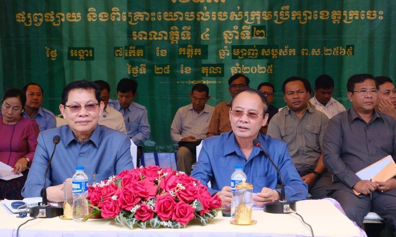 ខេត្តក្រចេះ៖ លោក ហឿ ស៊ីយ៉ែម ប្រធានក្រុមប្រឹក្សាខេត្តក្រចេះ និងលោក វ៉ា ថន អភិបាលខេត្ត នៅថ្ងៃអង្គារ ទី២៨ ខែតុលា ឆ្នាំ២០២៥ អញ្ជើញជាអធិបតីក្នុងវេទិកាផ្សព្វផ្សាយ និងពិគ្រោះយោបល់របស់ក្រុមប្រឹក្សាខេត្ត អាណត្តិទី៤ ឆ្នាំ២០២៥ ដើម្បីផ្សាព្វផ្សាយសមិទ្ធផល ដែលរដ្ឋបាលខេត្តសម្រេចបាន ឱ្យប្រជាពលរដ្ឋបានជ្រាប និងបង្ហាញនូវអ្វីដែលនៅសេសសល់ កំពុងបន្តធ្វើបន្ថែមទៀត និងឆ្លៀតឱកាសស្វែងយល់ពីបញ្ហាប្រឈម សំណូមពរបន្ថែមលើការងារដែលខ្វះចន្លោះរបស់អាជ្ញាធរមូលដ្ឋាន លើការងារបម្រើសេវាសាធារណៈ និងកិច្ចការអភិវឌ្ឍន៍មូលដ្ឋាន នៅស្រុកស្នួល ខេត្តក្រចេះ។