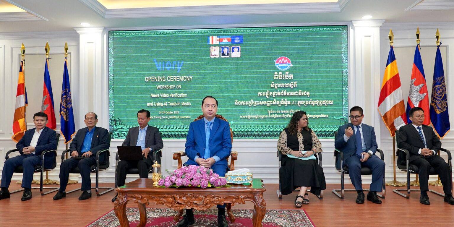 ភ្នំពេញ៖ សិក្ខាសាលាស្ដីពីការផ្ទៀងផ្ទាត់ព័ត៌មានជាវីដេអូ និងការប្រើប្រាស់បញ្ញាសិប្បនិម្មិត( AI )ក្នុងប្រព័ន្ធផ្សព្វផ្សាយ រៀបចំឡើងដោយក្រសួងព័ត៌មាន ក្រោមកិច្ចសហការគាំទ្រពីក្រុមហ៊ុន Viory បានប្រារព្ធពិធីបើកនៅព្រឹកថ្ងៃទី៣០ ខែតុលា ឆ្នាំ២០២៥ នាសាលមណ្ឌលបណ្តុះបណ្តាលនិងវិក្រឹតការវិជ្ជាជីវៈសារព័ត៌មាន ក្រោមអធិបតីភាព លោក នេត្រ ភក្ត្រា រដ្ឋមន្ត្រីក្រសួងព័ត៌មាន និងវត្តមាន លោកស្រី Nhishaeni Parmanadan តំណាងក្រុមហ៊ុន Viory ប្រចាំតបន់អាសុី និងវាគ្មិនក្រុមការងារមកពីប្រទេស អេមីរ៉ាត់អារ៉ាប់រួម។