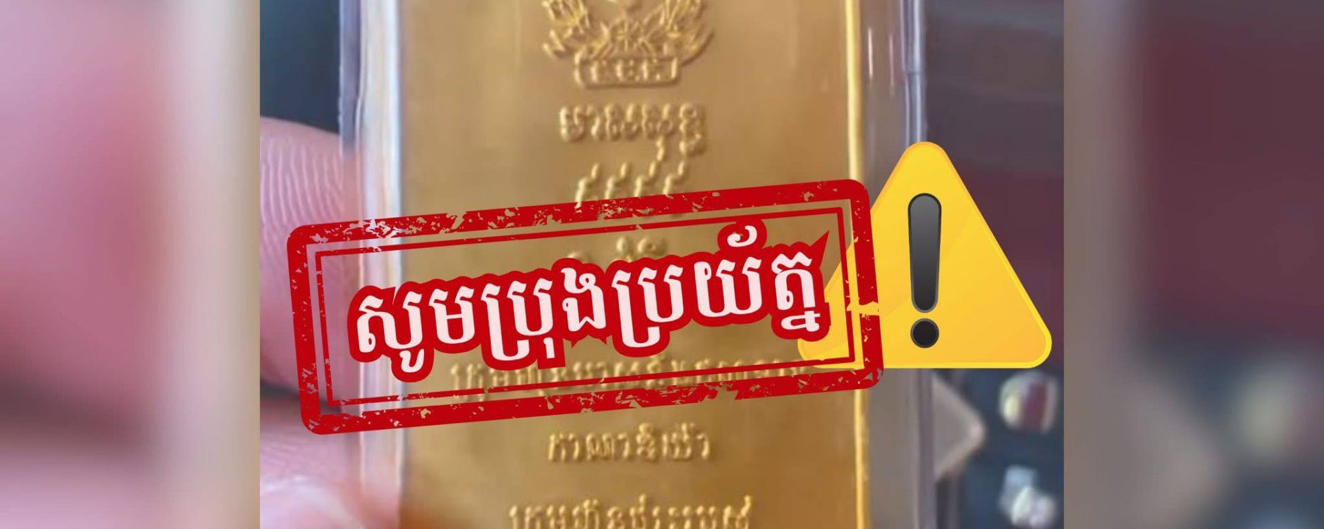 សូមបញ្ជាក់ជូនសាធារណជនថា ធនាគារជាតិនៃកម្ពុជាមិនដែលបោះផ្សាយមាសនោះទេ ហើយការប្រើប្រាស់និមិត្តសញ្ញា និងឈ្មោះរបស់ធនាគារជាតិនៃកម្ពុជា ដោយមិនមានការអនុញ្ញាត គឺជាទង្វើខុសច្បាប់។