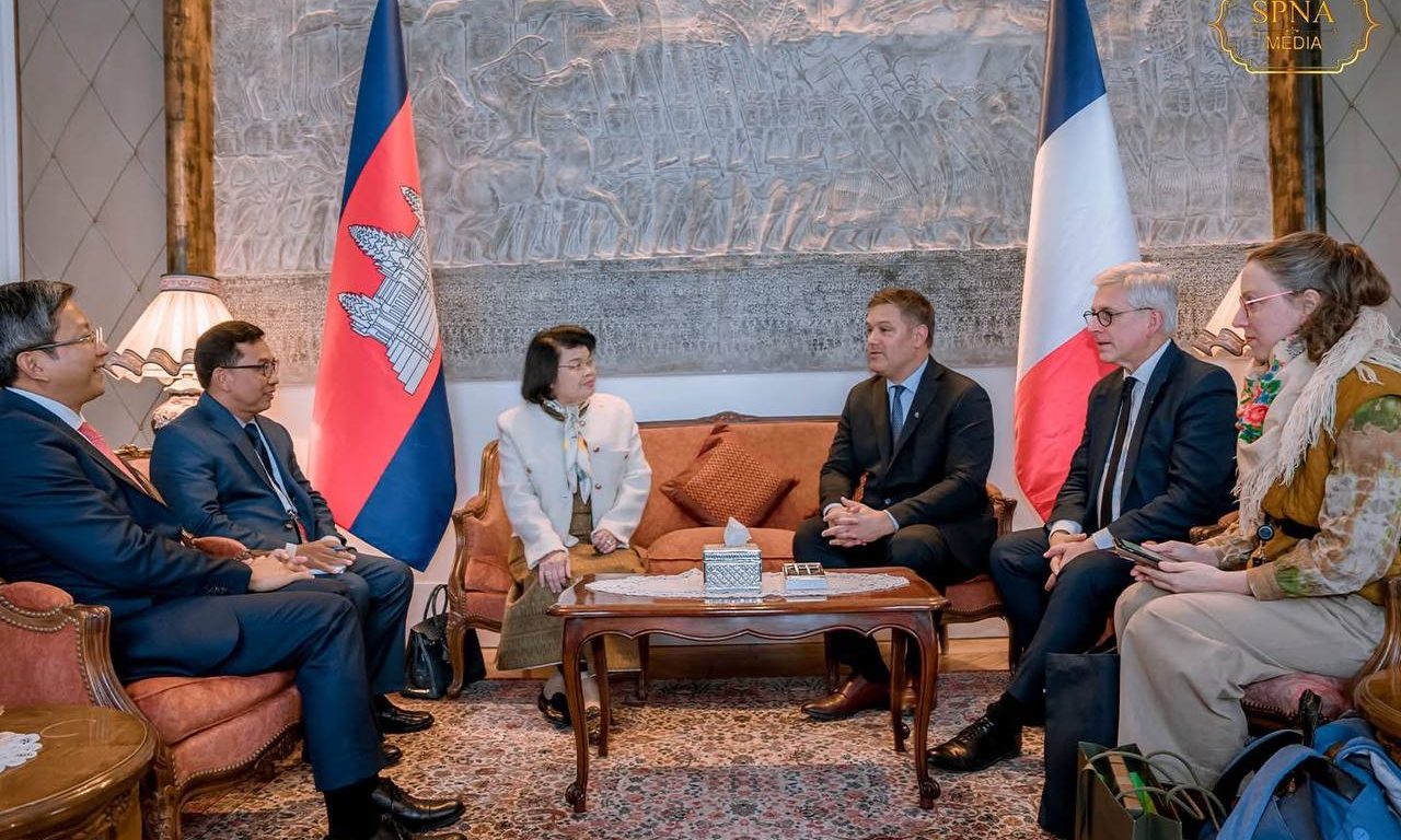 ទីក្រុងប៉ារីស ៖ សម្តេចមហារដ្ឋសភាធិការធិបតី ឃួន សុដារី ប្រធានរដ្ឋសភានៃព្រះរាជាណាចក្រកម្ពុជា បានទទួលជួបពិភាក្សាការងារជាមួយ លោក ថូម៉ាស់ ឡាំ (Thomas Lam) សមាជិករដ្ឋសភា និងជាប្រធានក្រុមមិត្តភាពរដ្ឋសភាបារាំង-កម្ពុជា នៅថ្ងៃទី៣០ ខែតុលា ឆ្នាំ២០២៥ នៅក្នុងនិវេសនដ្ឋានឯកអគ្គរាជទូតកម្ពុជាប្រចាំនៅសាធារណរដ្ឋបារាំង ដើម្បីពង្រឹង និងពង្រីកចំណងមិត្តភាព កិច្ចសហប្រតិបត្តិការ រដ្ឋសភាប្រទេសទំាងពីរឱ្យកាន់តែរឹងមាំឡើង។
