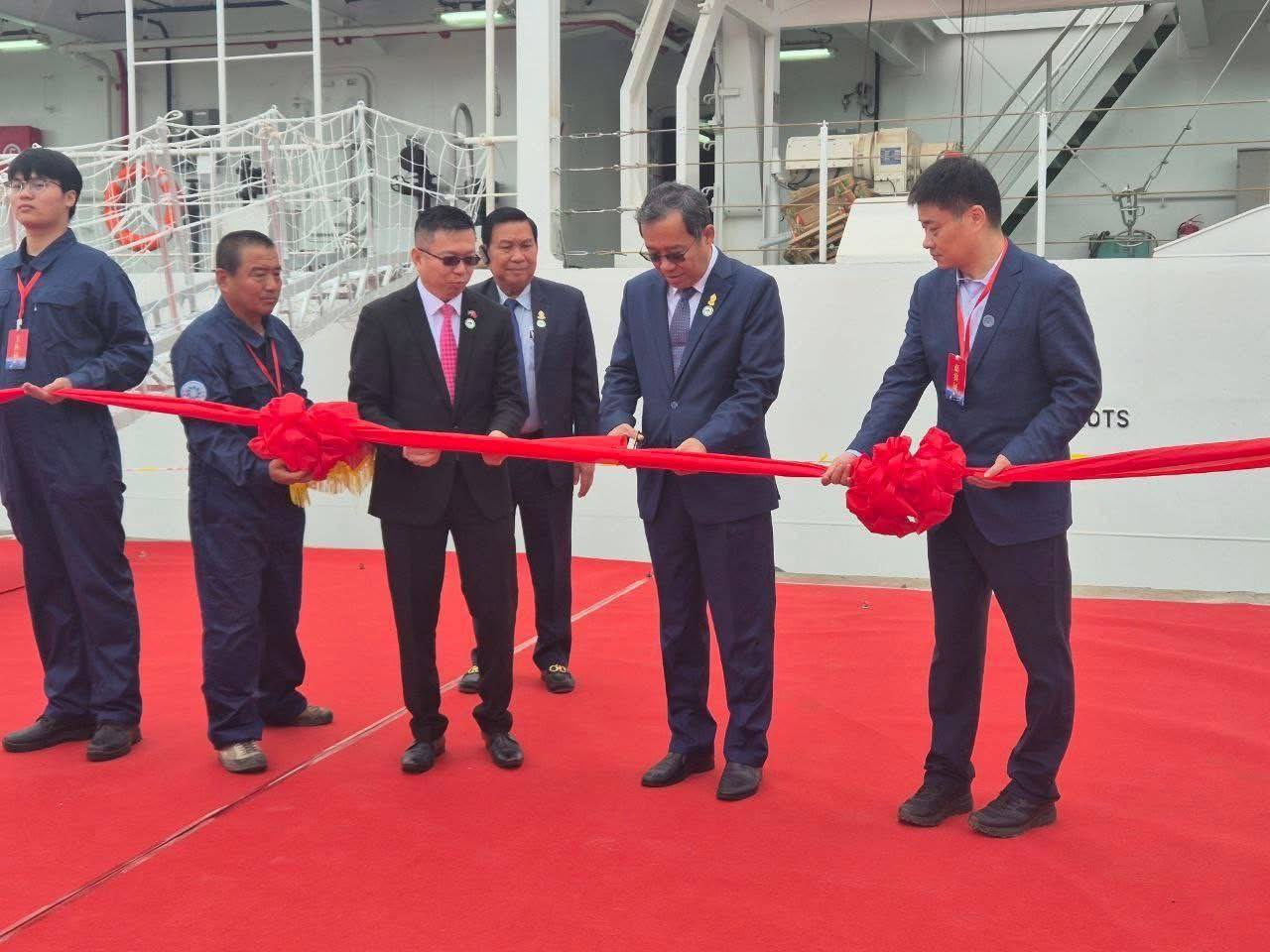 (ខេត្តជឺជាំង) ៖ នៅព្រឹកថ្ងៃទី៣១ ខែតុលា ឆ្នាំ២០២៥ នៅក្រុងថាយចូវ ខេត្តជឺជាំង នាវាពេទ្យខ្នាតយក្សដែលមានបណ្តោយ១០០.១៥ម៉ែត្រ ទទឹង១៨ម៉ែត្រ កម្ពស់១២ម៉ែត្រពីបាតនាវា និងទម្ងន់៥០០០តោន ត្រូវបានសមាគមអ្នកស្រាវជ្រាវវឌ្ឍនភាពកម្ពុជា-ចិន និង មូលនិធិPEACELAND បានរួមគ្នារៀបចំព្រឹត្តិការណ៍កាត់ខ្សែបូរដាក់ឱ្យដំណើរការជាផ្លូវការ ក្រោមអធិបតីភាពរបស់លោកបណ្ឌិត ធន់ វឌ្ឍនា អនុប្រធានទី២ព្រឹទ្ធសភា។