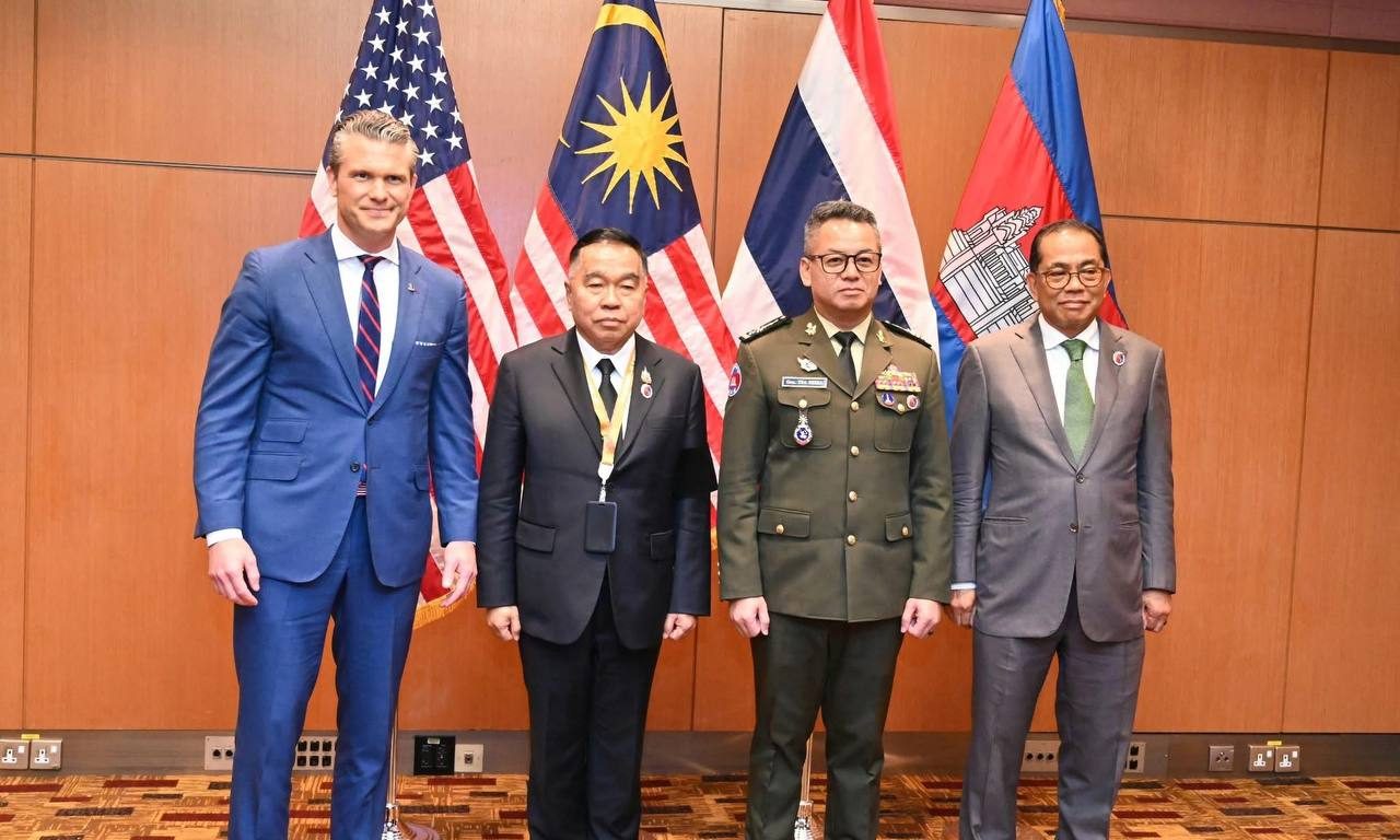 ប្រទេសម៉ាឡេស៊ី ៖ លោកនាយឧត្តមសេនីយ៍ ទៀ សីហា ឧបនាយករដ្ឋមន្ត្រី រដ្ឋមន្ត្រីក្រសួងការពារជាតិ ថ្ងៃទី៣១ ខែតុលា ឆ្នាំ២០២៥ នាក្រុងកូឡាឡាំពួ ប្រទេសម៉ាឡេស៊ី សូមថ្លែងអំណរគុណចំពោះសហរដ្ឋអាមេរិក និងប្រទេសម៉ាឡេស៊ី ដែលបានជួយសម្របសម្រួលឱ្យមាន «កិច្ចព្រមព្រៀងសន្តិភាព» រវាងកម្ពុជា-ថៃ ដែលបានចុះហត្ថលេខារួមគ្នា កាលពីថ្ងៃទី២៦ ខែតុលា ឆ្នាំ២០២៥ ។
