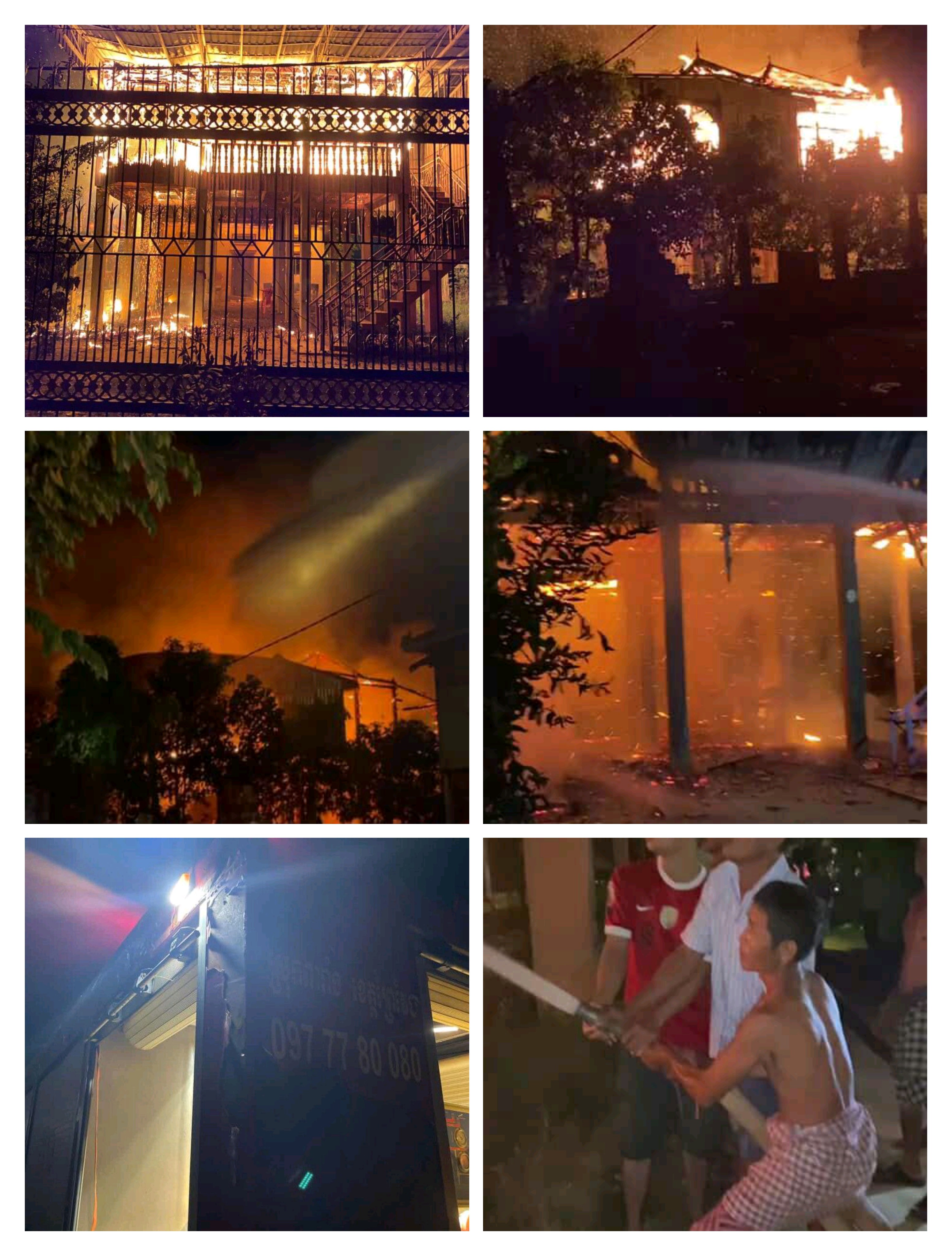 ខេត្តព្រៃវែង ៖ ផ្ទះក្បឿង១ខ្នងទំហំ៨ម៉ែត្រគុណនឹង១១ ម៉ែត្រ ត្រូវបានអគ្គីភ័យឆាបឆេះអស់ទាំងស្រុងដោយ សារតែក្មួយប្រុសម្ចាស់ផ្ទះ ដែលជាជនវិកលចរិត ឡើងទៅដេកហើយជក់បារីនៅលើពូកធ្វើឱ្យភ្លើងកន្ទុយបារីឆេះពូក កើតជាអគ្គីភ័យហើយឆាបឆេះផ្ទះខ្ទេច។