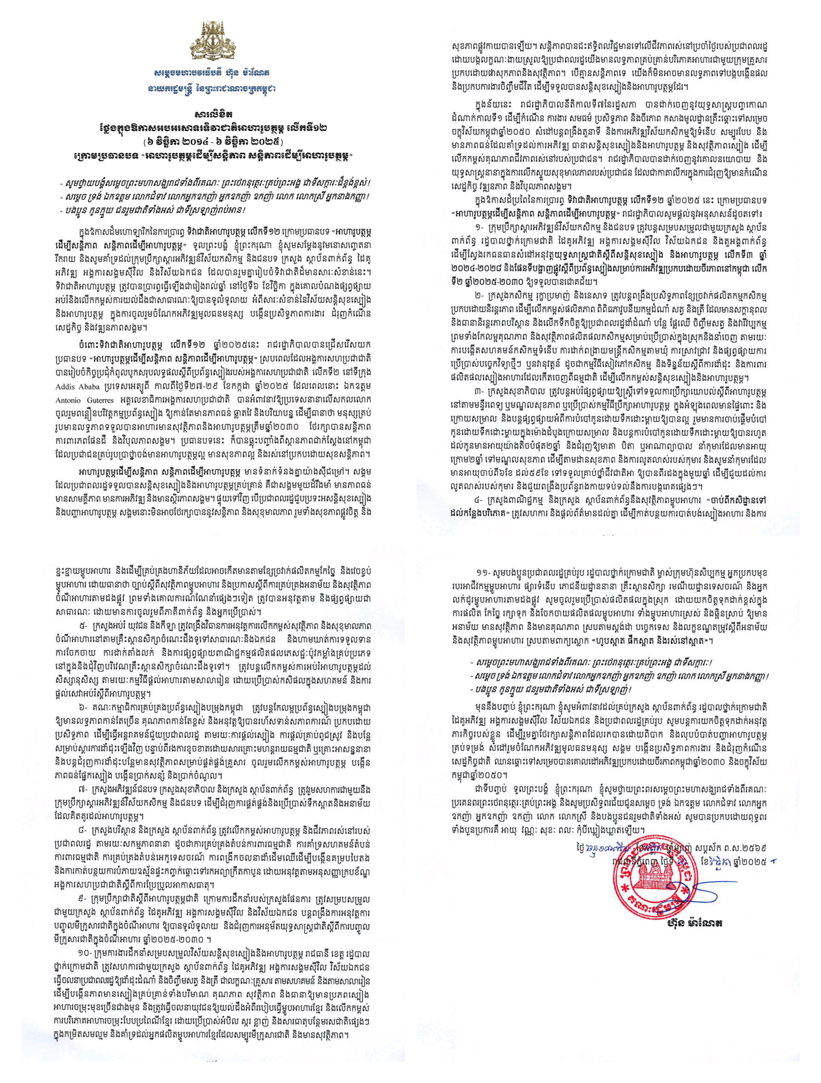 ក្នុងឱកាសដ៏ប្រពៃនៃការប្រារព្ធ ទិវាជាតិអាហារូបត្ថម្ភ លើកទី១២ ឆ្នាំ២០២៥នេះ រាជរដ្ឋាភិបាលសូមផ្តល់នូវអនុសាសន៍ដូចតទៅ៖