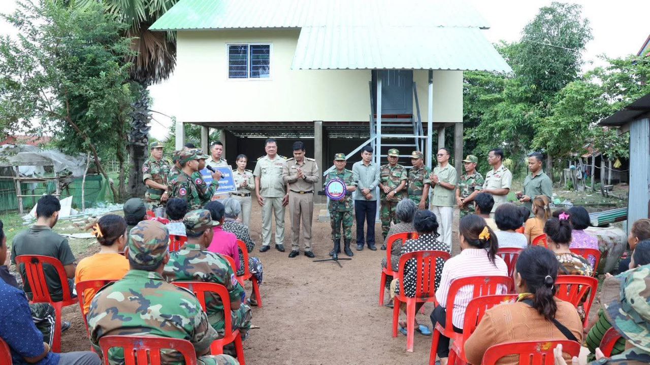 ខេត្តកំពង់ធំ÷ ឧត្តមសេនីយ៍ទោ សោម ស៊ុន មេបញ្ជាការ តំបន់ប្រតិបត្តិការសឹករងខេត្តកំពង់ធំ តំណាងគណៈកម្មាធិការសមាគមអតីតយុទ្ធជន និងនិវត្តជនកម្ពុជា ខេត្តកំពង់ធំ នាថ្ងៃទី៣ ខែវិច្ឆិកា ឆ្នាំ២០២៥ ជាមួយលោក វណ្ណៈ សោភានិត អភិបាលស្រុក ប្រធានសមាគមអតីតយុទ្ធជន និងនិវត្តជនកម្ពុជា ស្រុកប្រាសាទបល្ល័ង្ក បានដឹកនាំក្រុមការងារ និងអាជ្ញាធរដែនដី ចុះប្រគល់ផ្ទះថ្មី ដែលទើបសាងសង់រួចនៅលើដីកម្មសិទ្ធិរបស់គ្រួសារអតីតយុទ្ធជនពលីដោយសារសង្គ្រាមមួយគ្រួសារ ដែលមានដីតែមានជម្រកស្នាក់នៅមិនសមរម្យ ស្ថិតនៅភូមិថ្នល់ ឃុំទួលគ្រើល ស្រុកប្រាសាទបល្ល័ង្ក ខេត្តកំពង់ធំ។