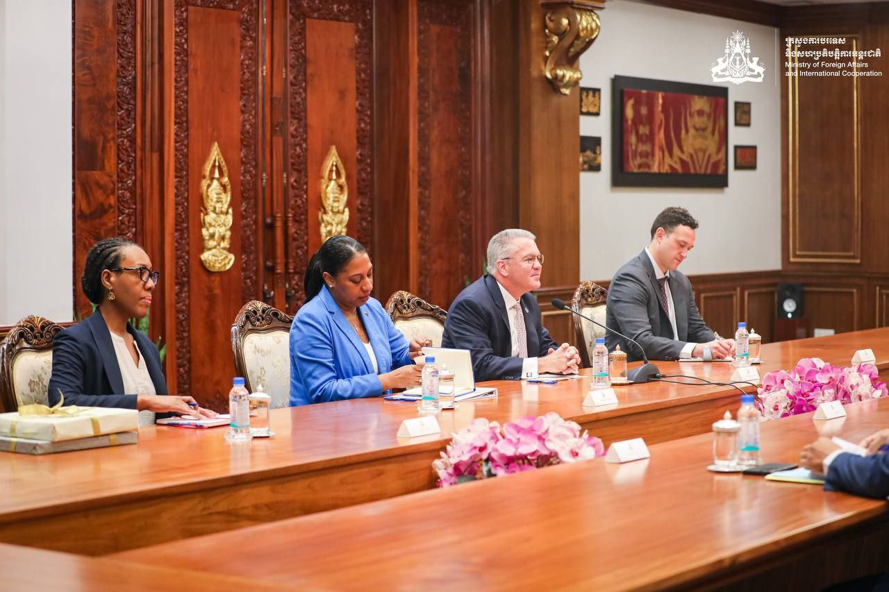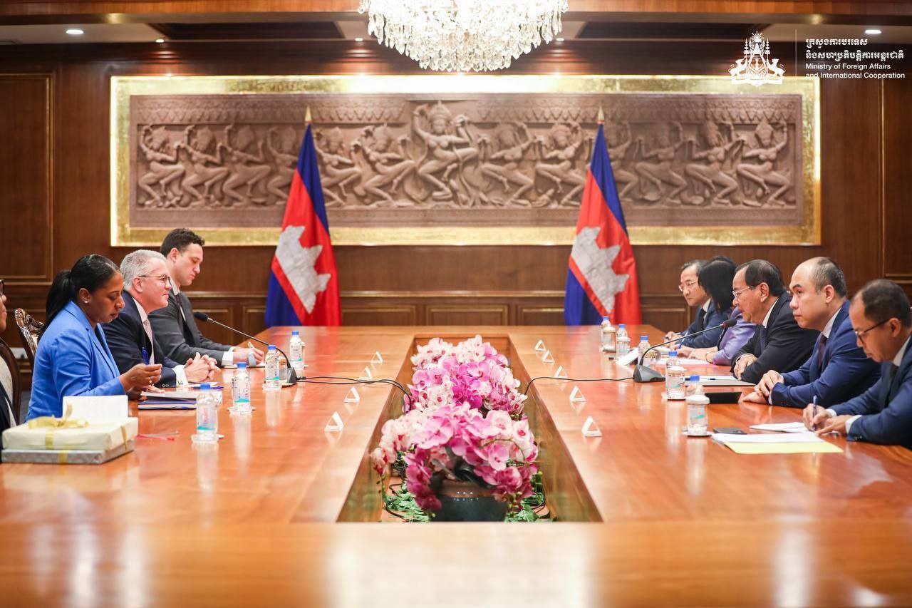 ភ្នំពេញ ៖ នៅព្រឹកថ្ងៃទី៤ ខែវិច្ឆិកា ឆ្នាំ២០២៥ លោកឧបនាយករដ្ឋមន្ត្រី ប្រាក់ សុខុន រដ្ឋមន្ត្រីការបរទេស និងសហប្រតិបត្តិការអន្តរជាតិ បានទទួលជួបលោក Michael George DeSombre ឧបការីរដ្ឋមន្ត្រីការបរទេសអាម៉េរិក ទទួលបន្ទុកតំបន់អាស៊ីបូព៌ា និងប៉ាស៊ីហ្វិក នៅទីស្តីការក្រសួង។