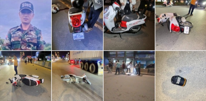 ជនរងគ្រោះដែលត្រូវបានគេស្គាល់ឈ្មោះ សាន់ បញ្ញា ភេទប្រុស ជាមន្ត្រីយោធា ជិះម៉ូតូស្កូបពី ពណ៍ស ពាក់ស្លាកលេខភ្នំពេញKC 7244 ។
