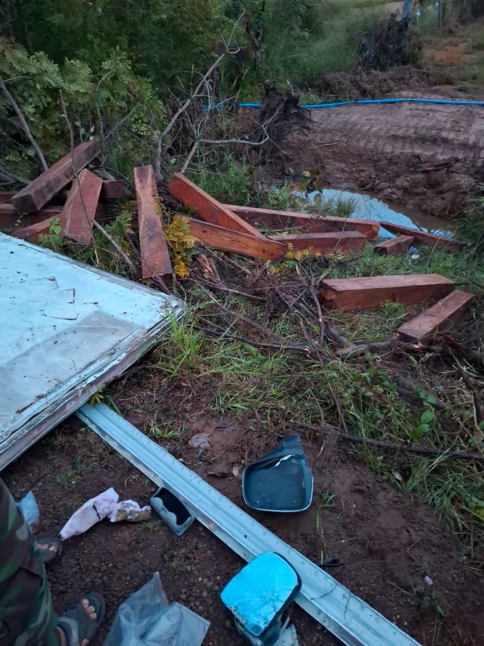 ប្រភពព័ត៌មានបានបង្ហើបឲ្យដឹងថា នៅមុនពេលកើត ហេតុ គេបានឃើញរថយន្តឃ្លុប ១គ្រឿង បានបើកបោះពួយក្នុងទិសដៅពីជើងមកត្បូងក្នុងល្បឿនយ៉ាងលឿន។ លុះមកដល់ចំណុចកើតហេតុខាងលើ គេបាន ឃើញរថយន្តនោះបែកកង់ក្រោយ នៅផ្នែកខាងឆ្វេង ហើយបានប្រាស់ខ្លួនដេកទៅខាងស្តាំដៃ ខណៈនោះ គេបានឃើញឈើជ្រុងជាច្រើនដុំ ខ្ទាតចេញមកខាងក្រៅរថយន្ត ធ្លាក់រាយប៉ានៅលើចិញ្ចើមផ្លូវ ដែលឈើទាំង នោះ គេបានរាប់ឃើញថា មានចំនួន ២១ដុំ ជាប្រភេទឈើសុក្រំជ្រុង។